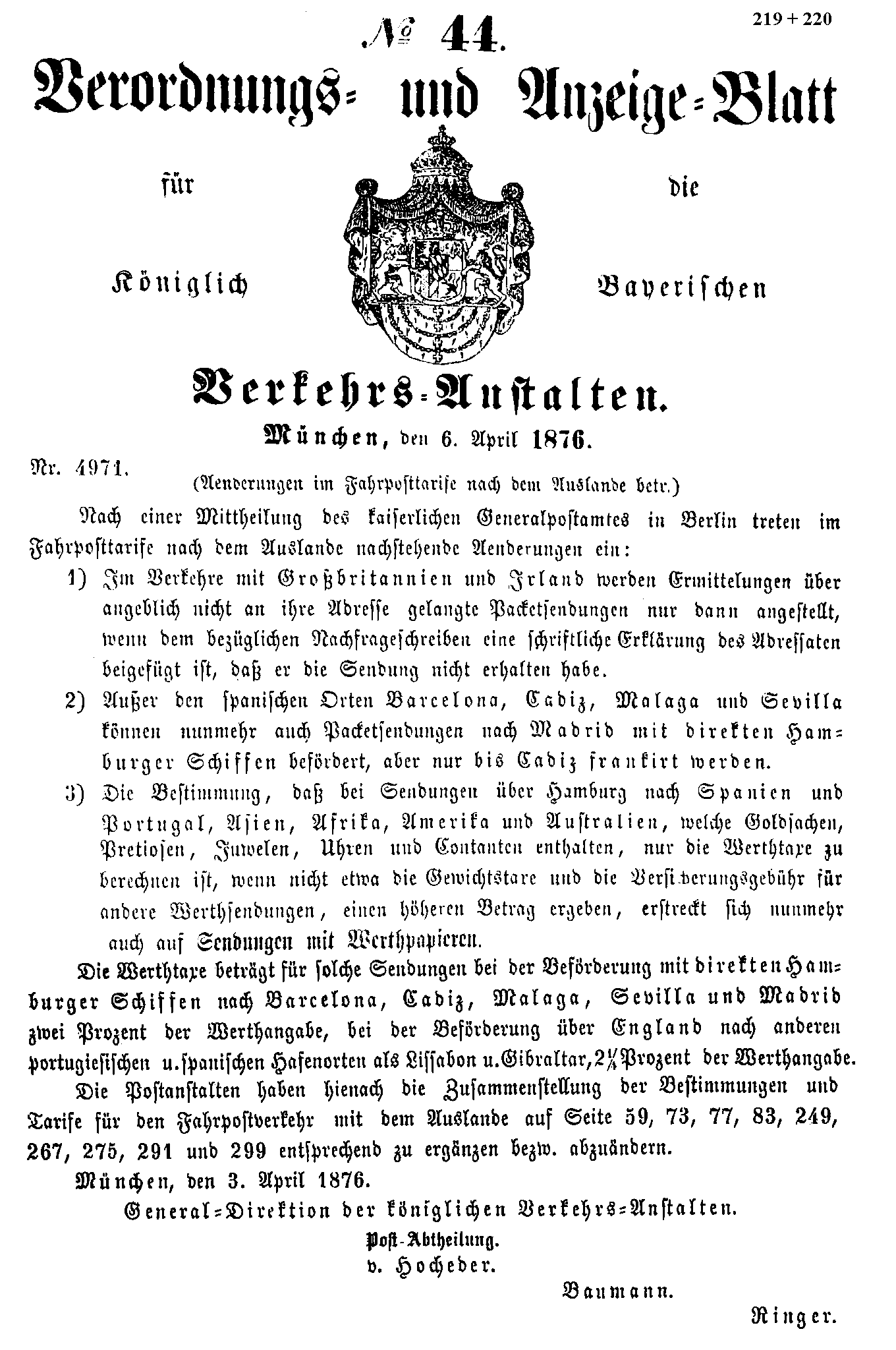 Verordnungs- und Anzeige-Blätter