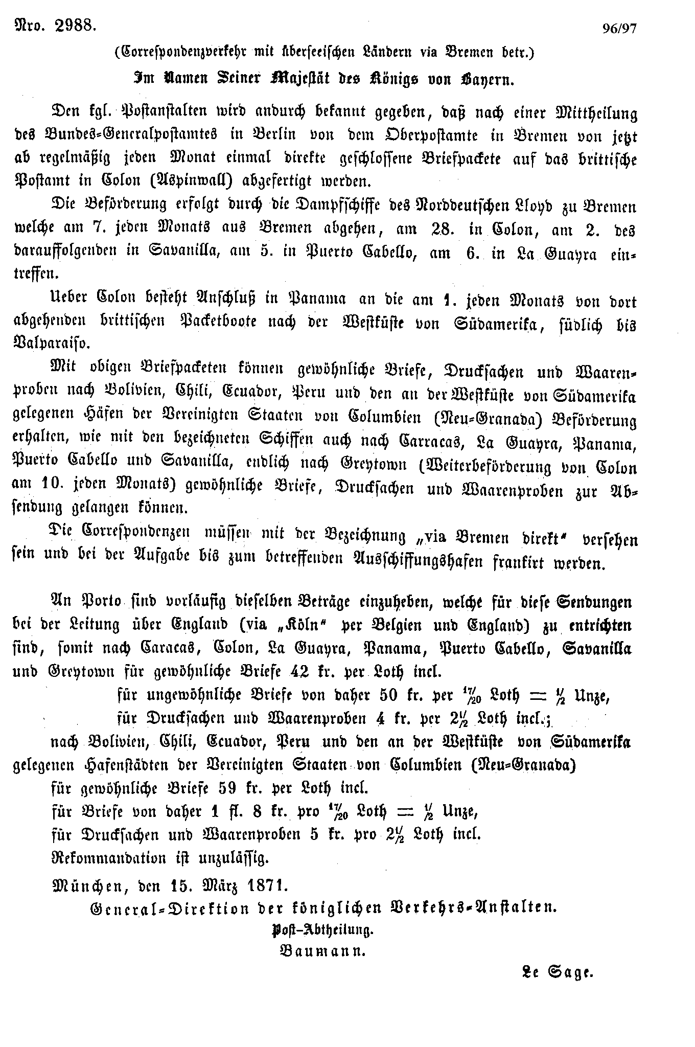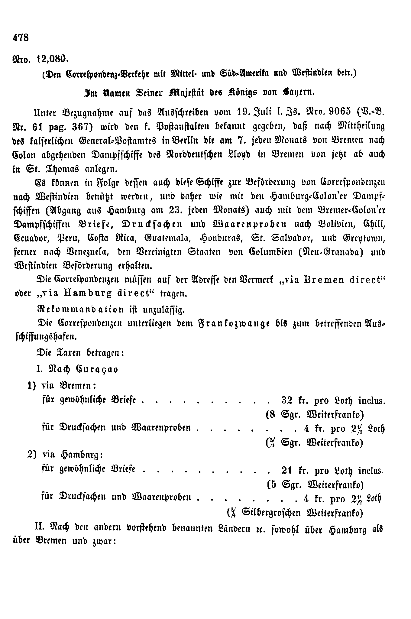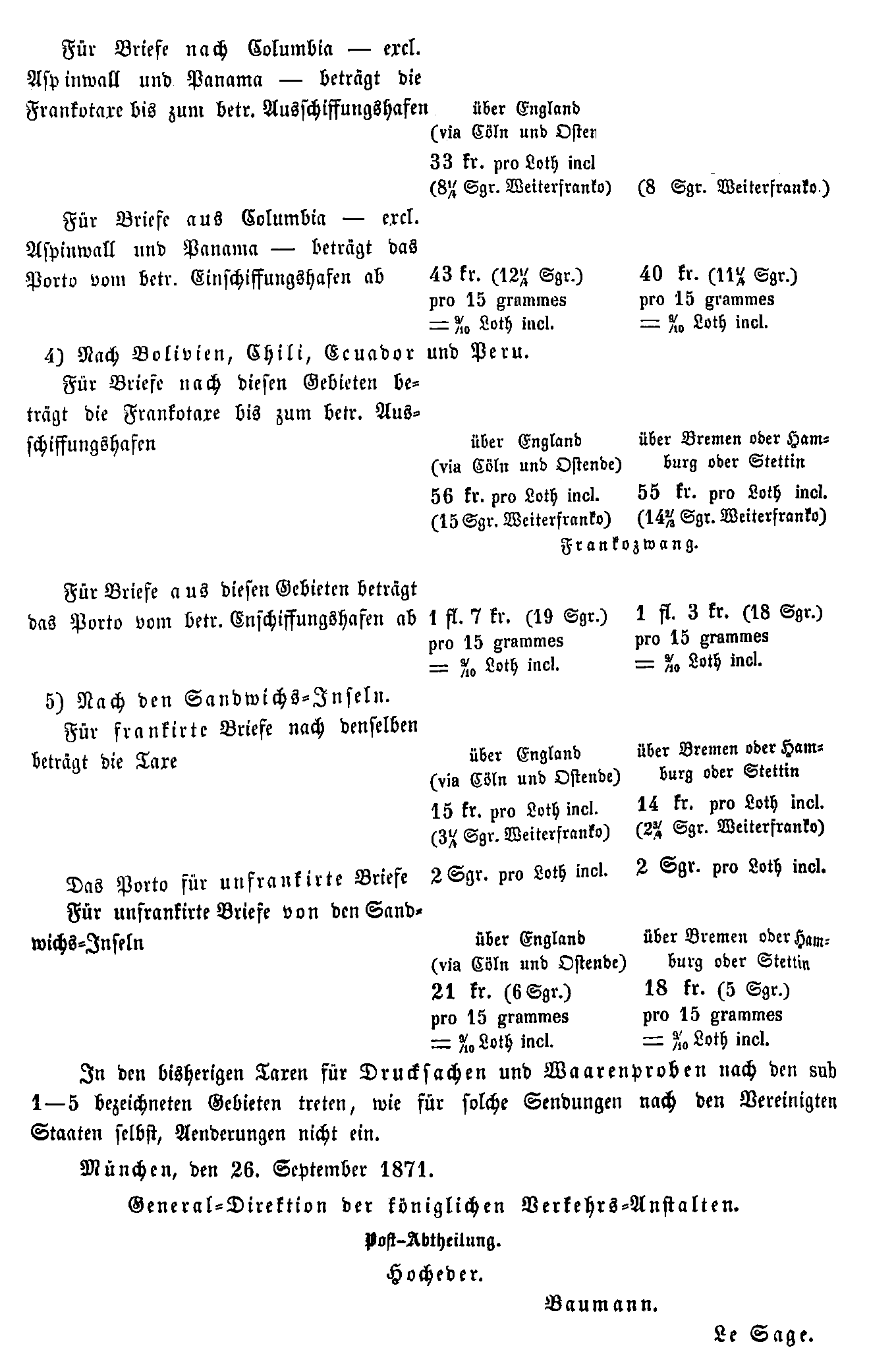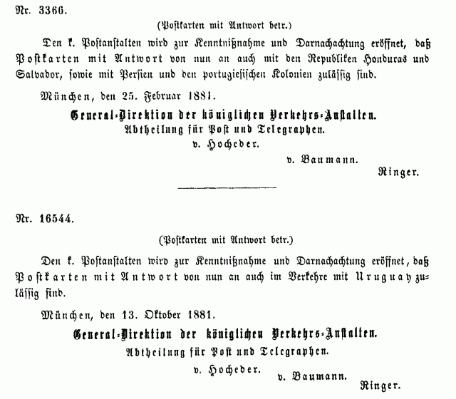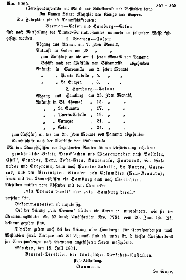 Postverordnungen - Mittel- und Südamerika, Karibik