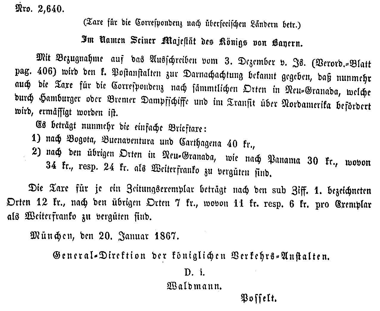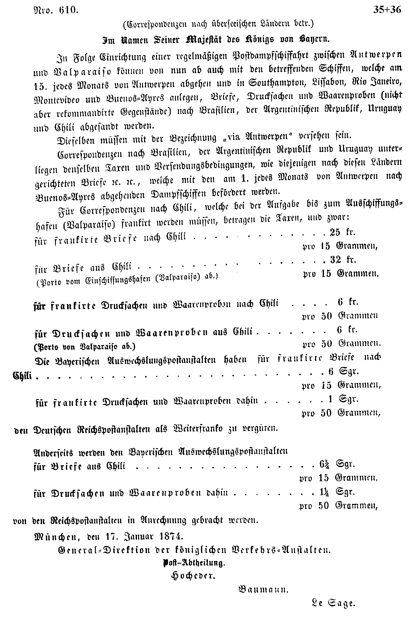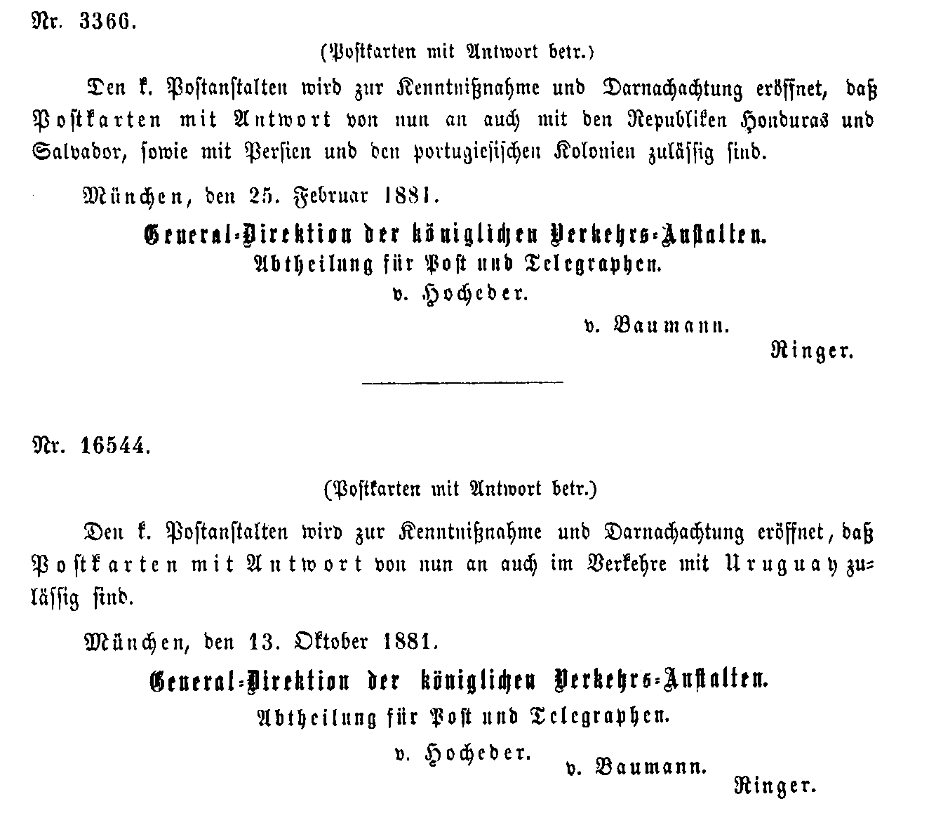 Postverordnungen - Mittel- und Südamerika, Karibik