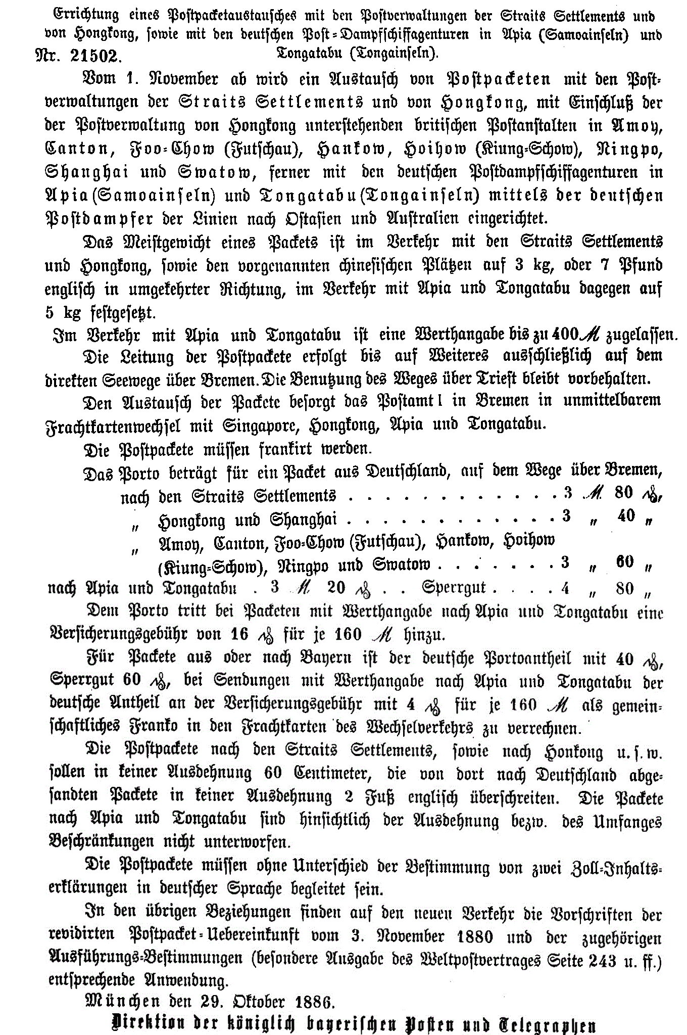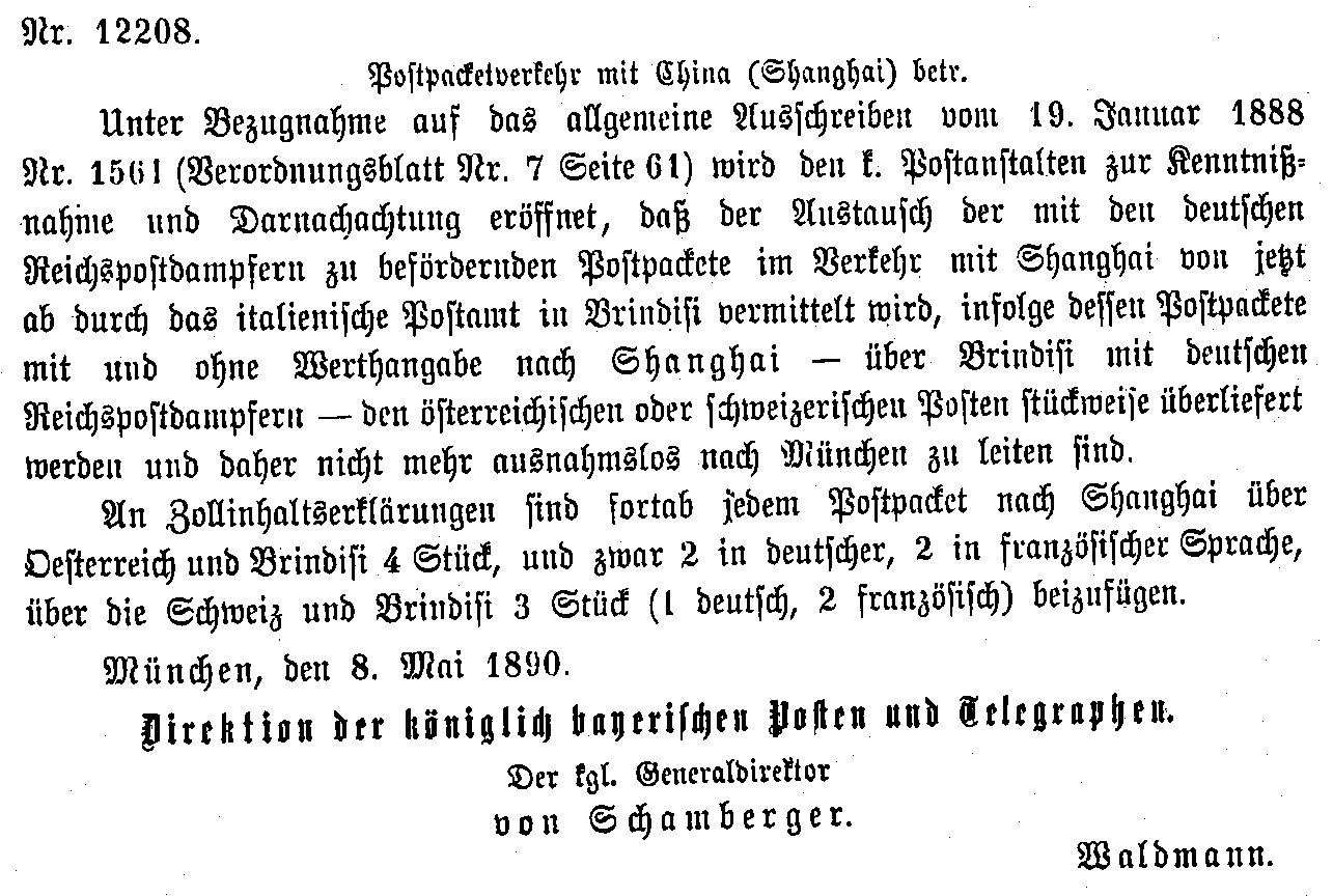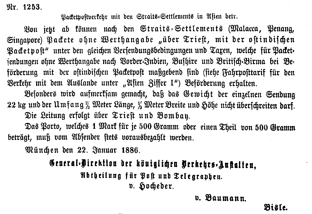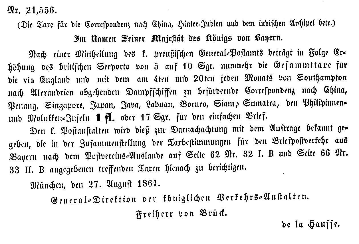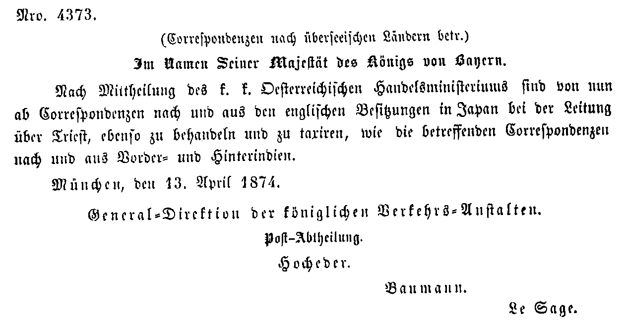 Postverordnungen - Asien
