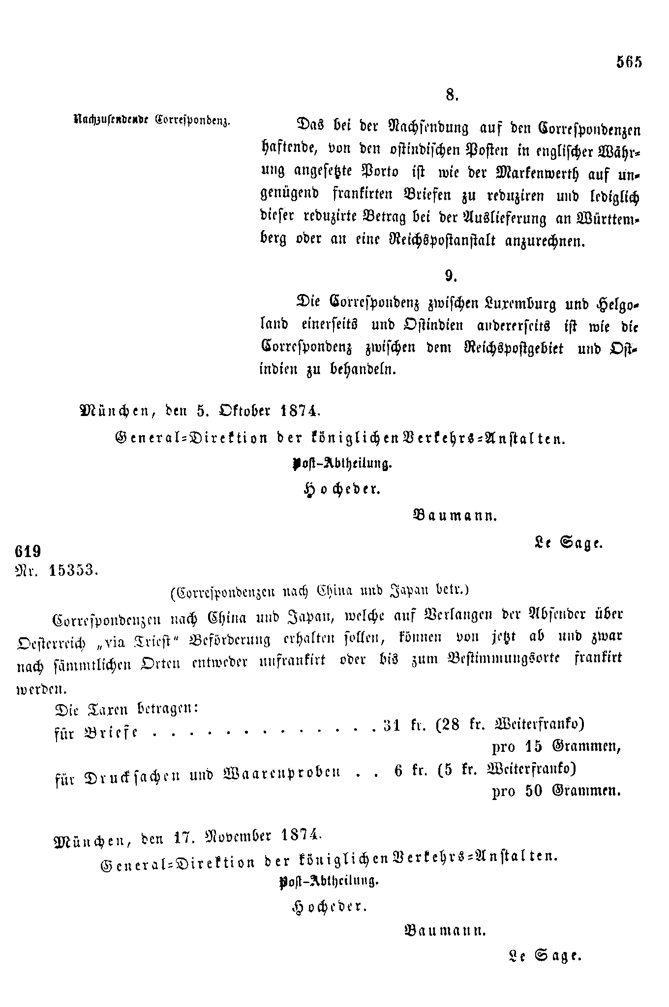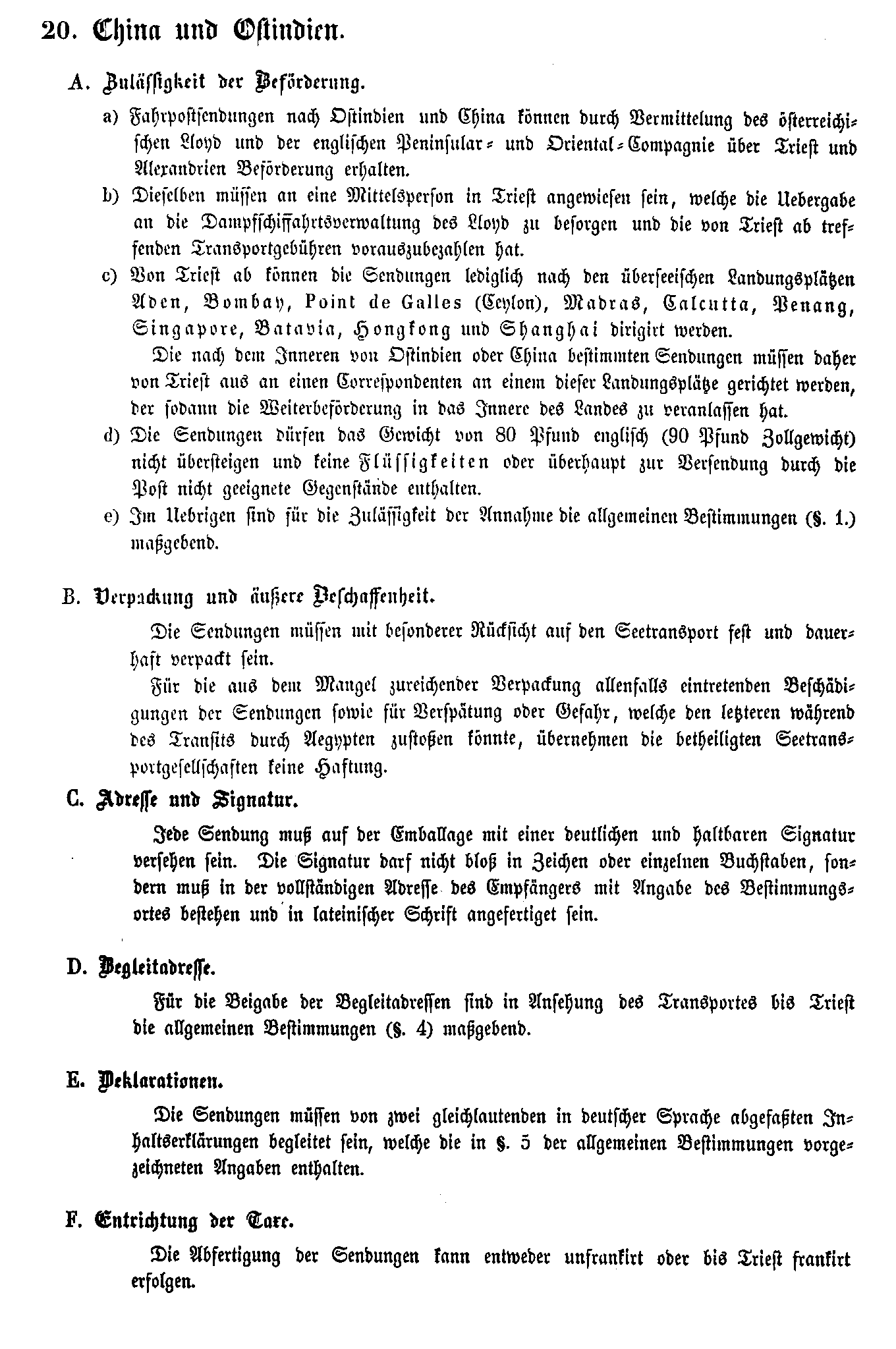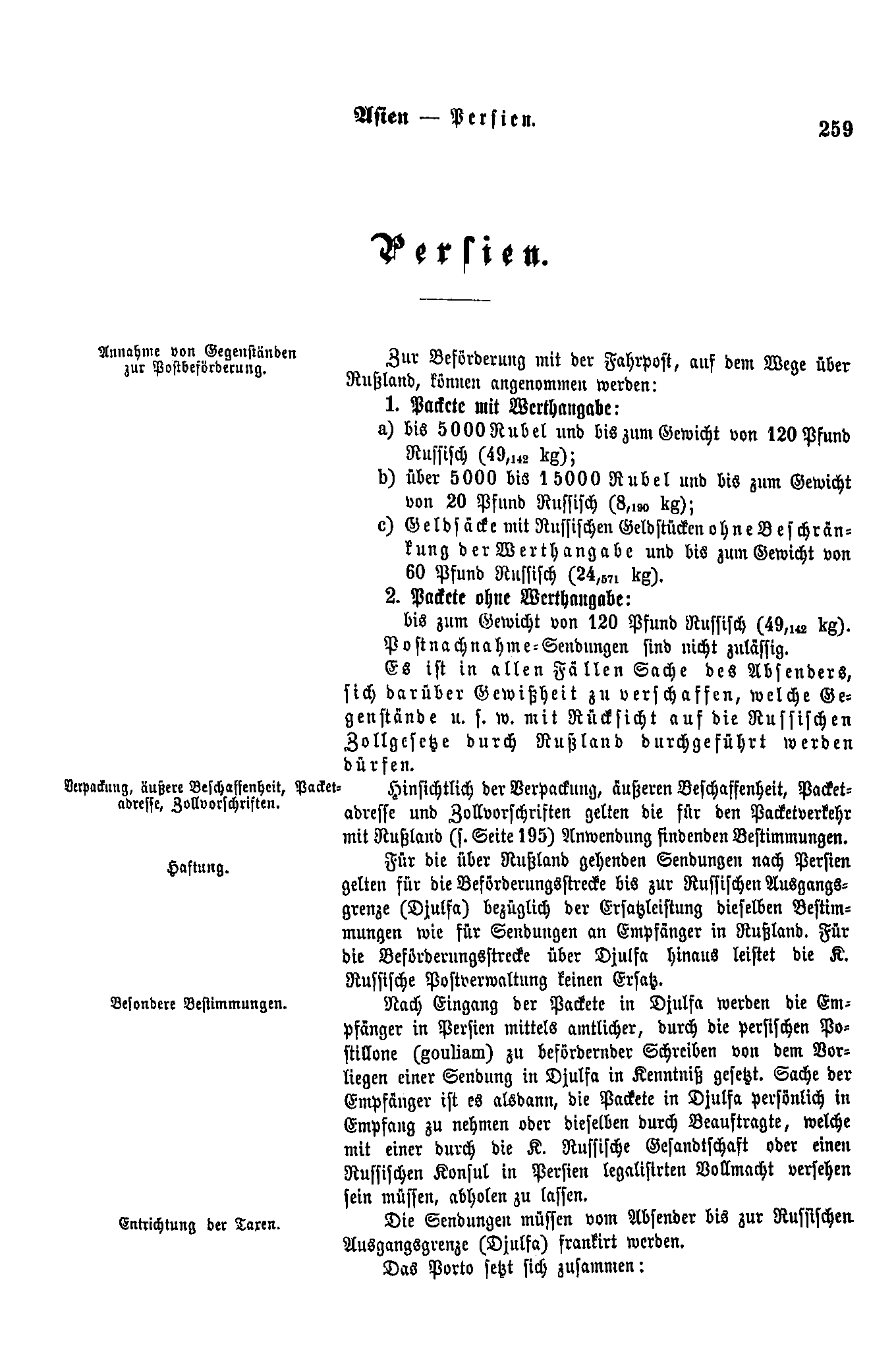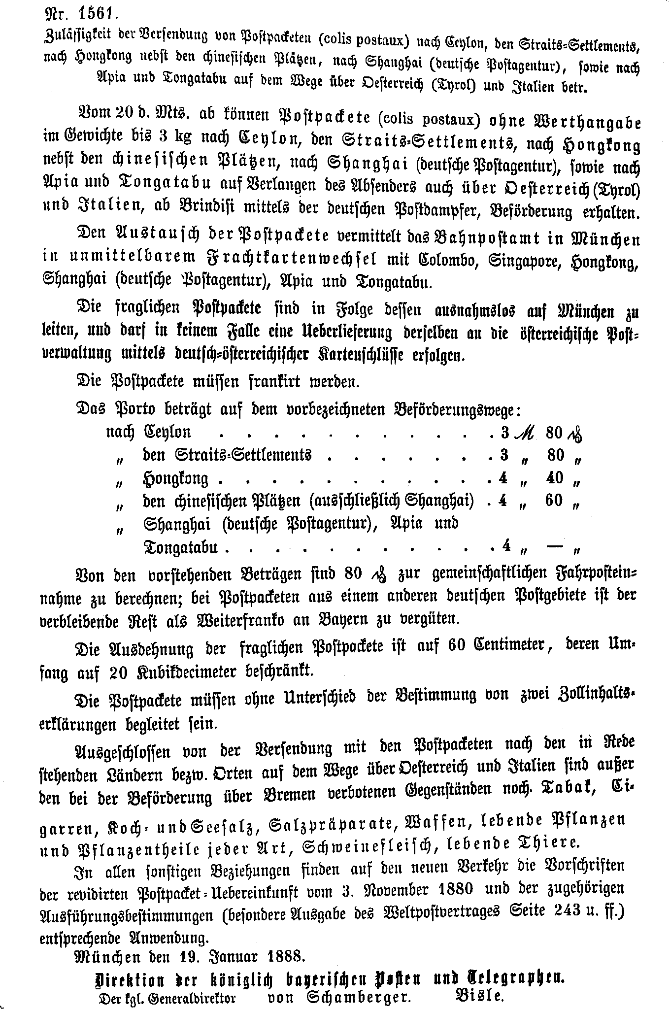 Postverordnungen - Asien