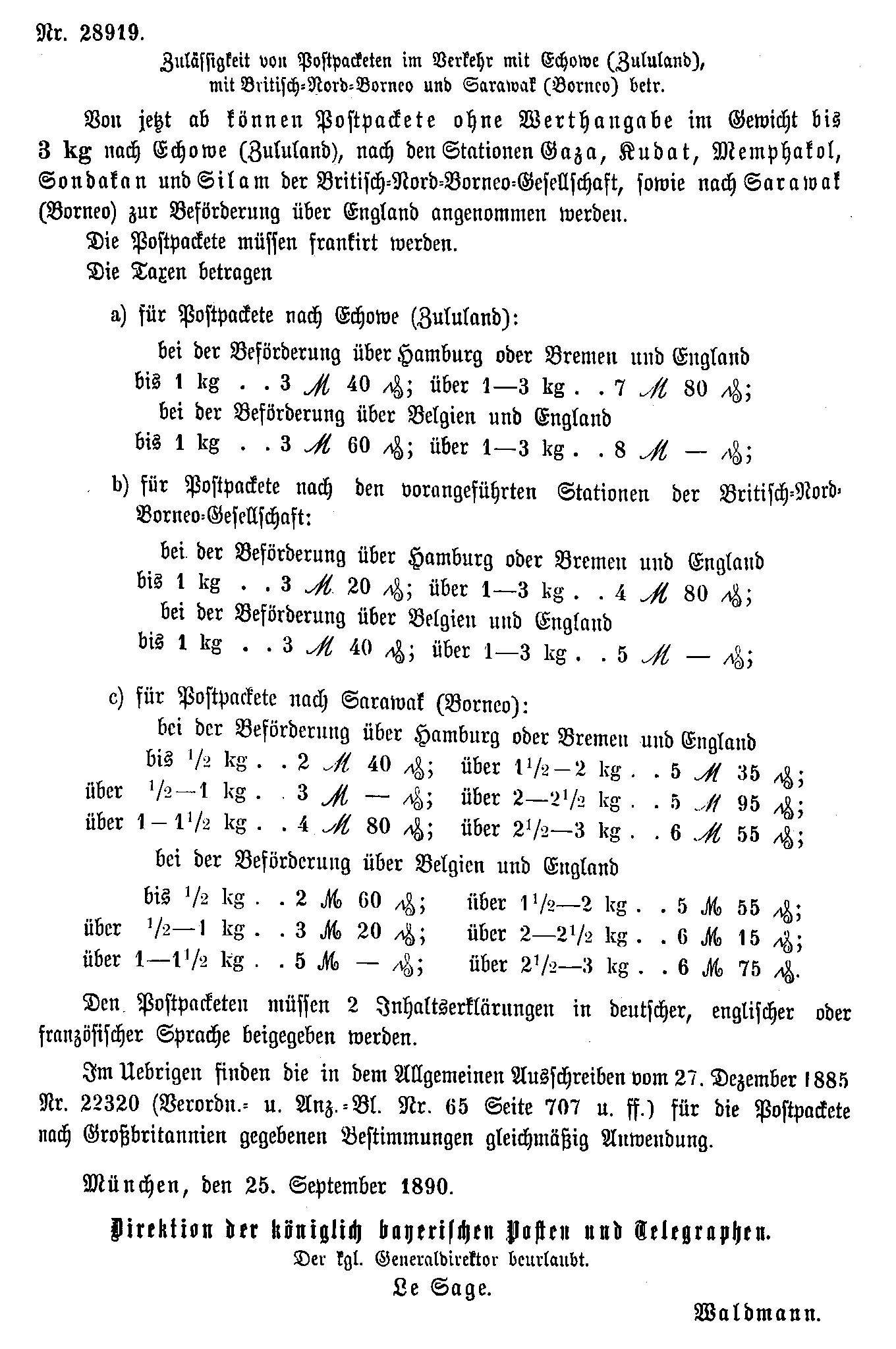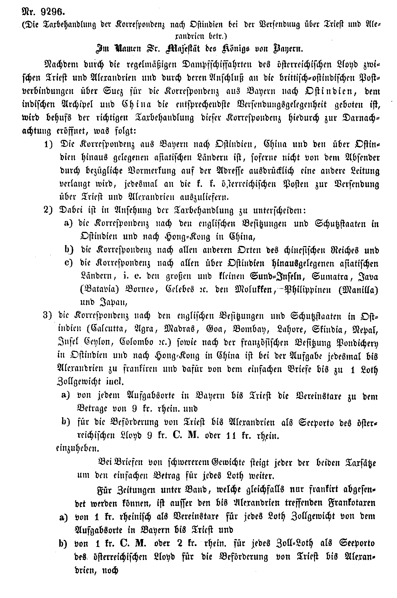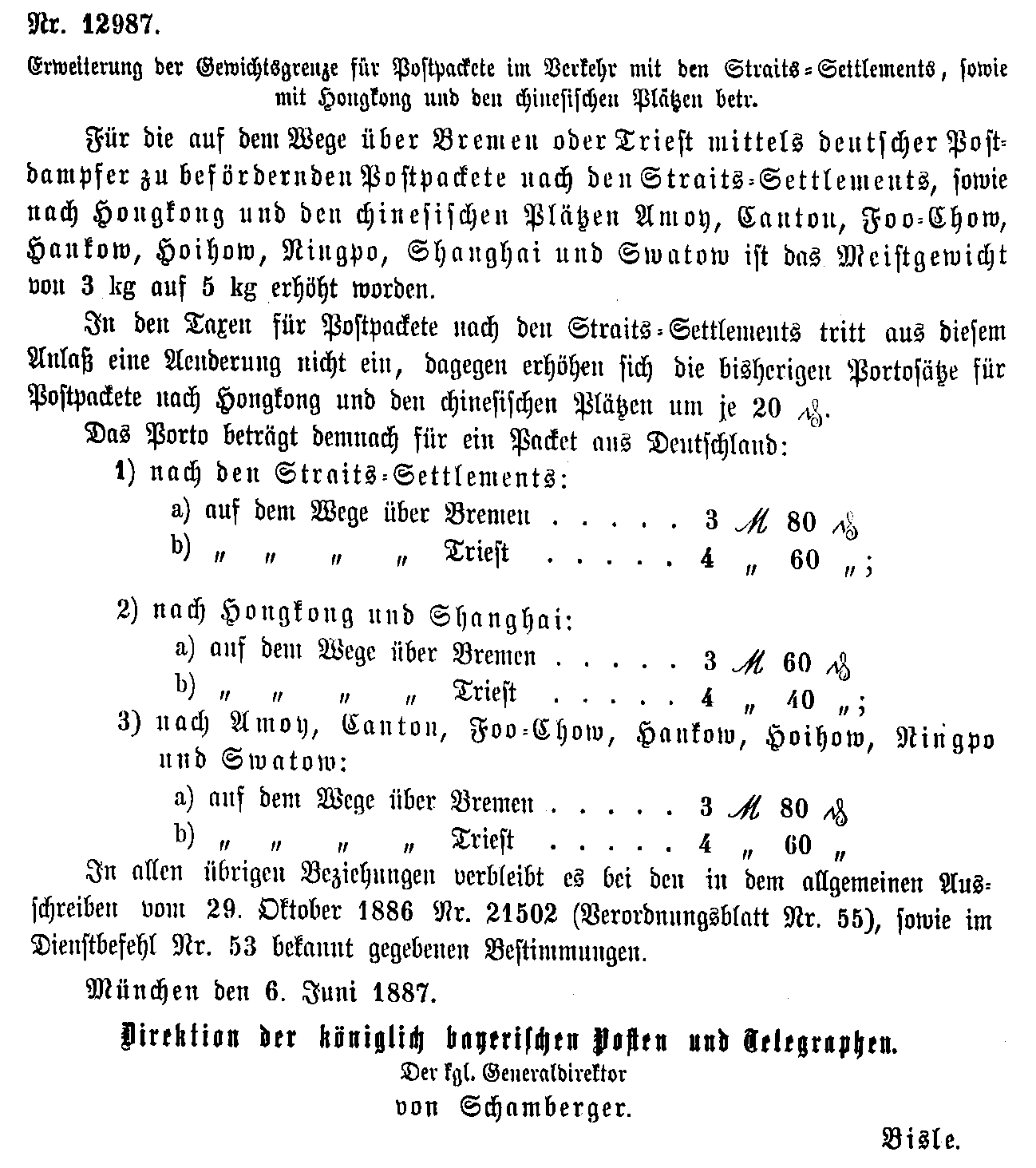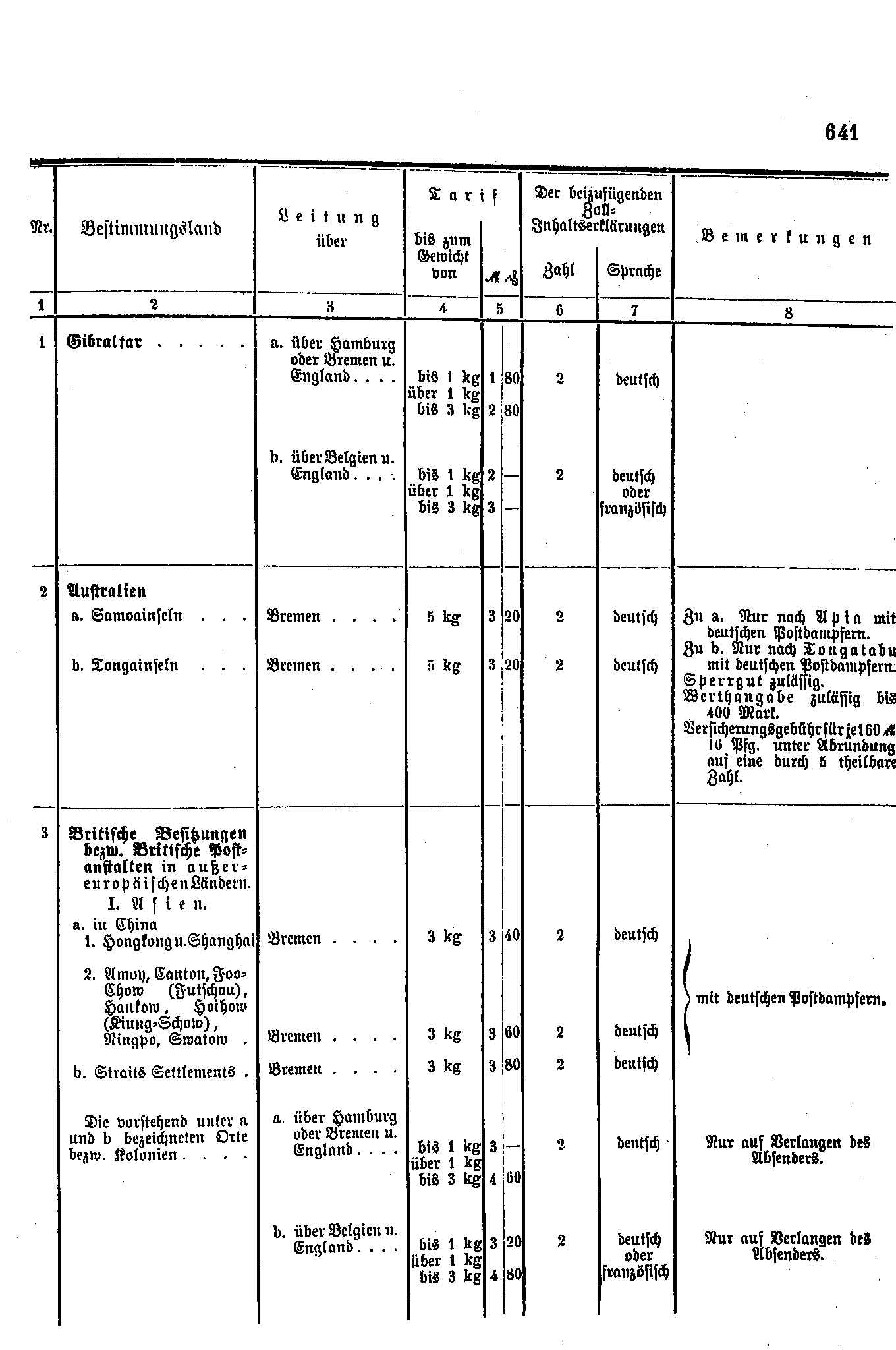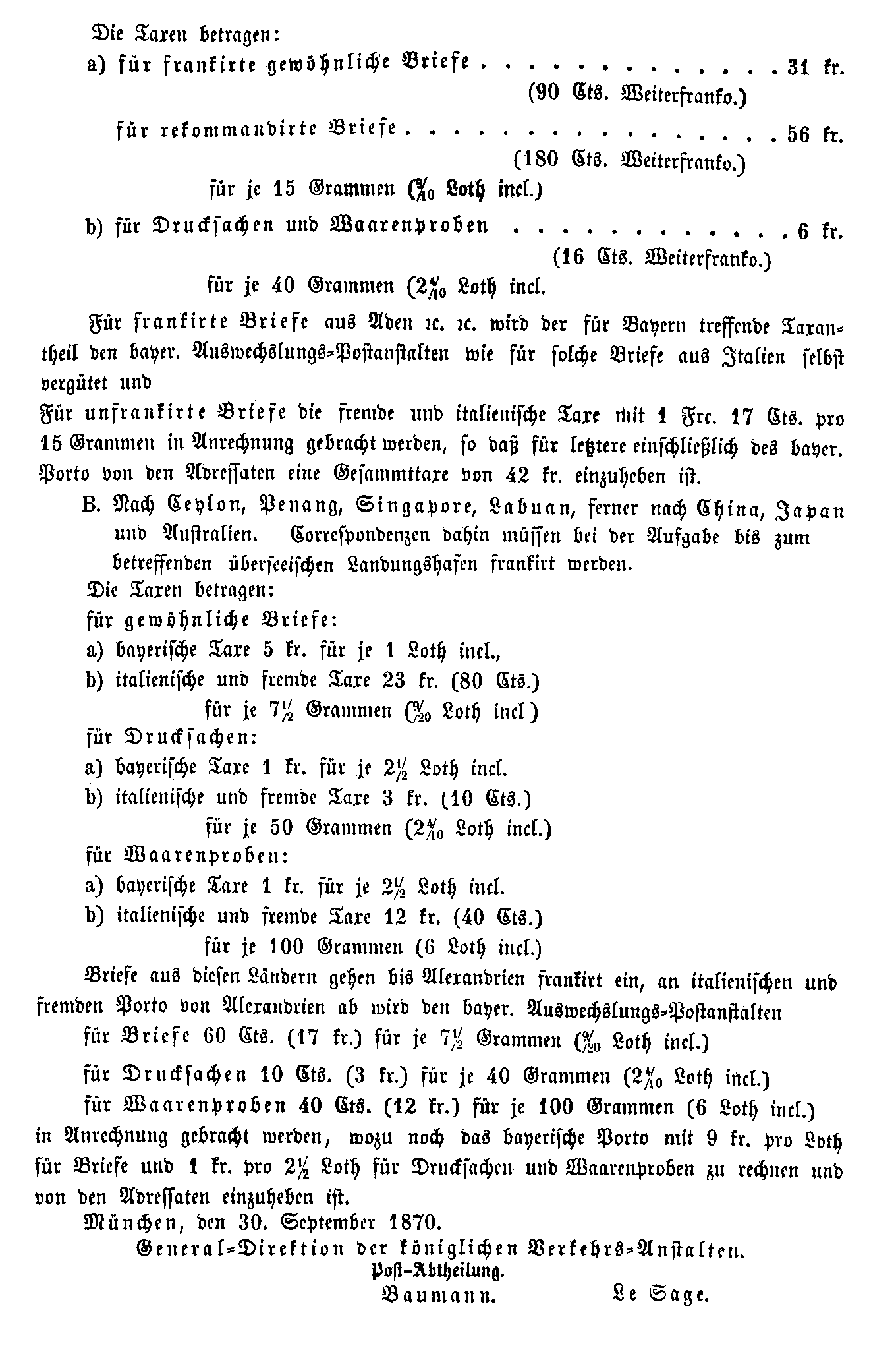 Postverordnungen - Asien