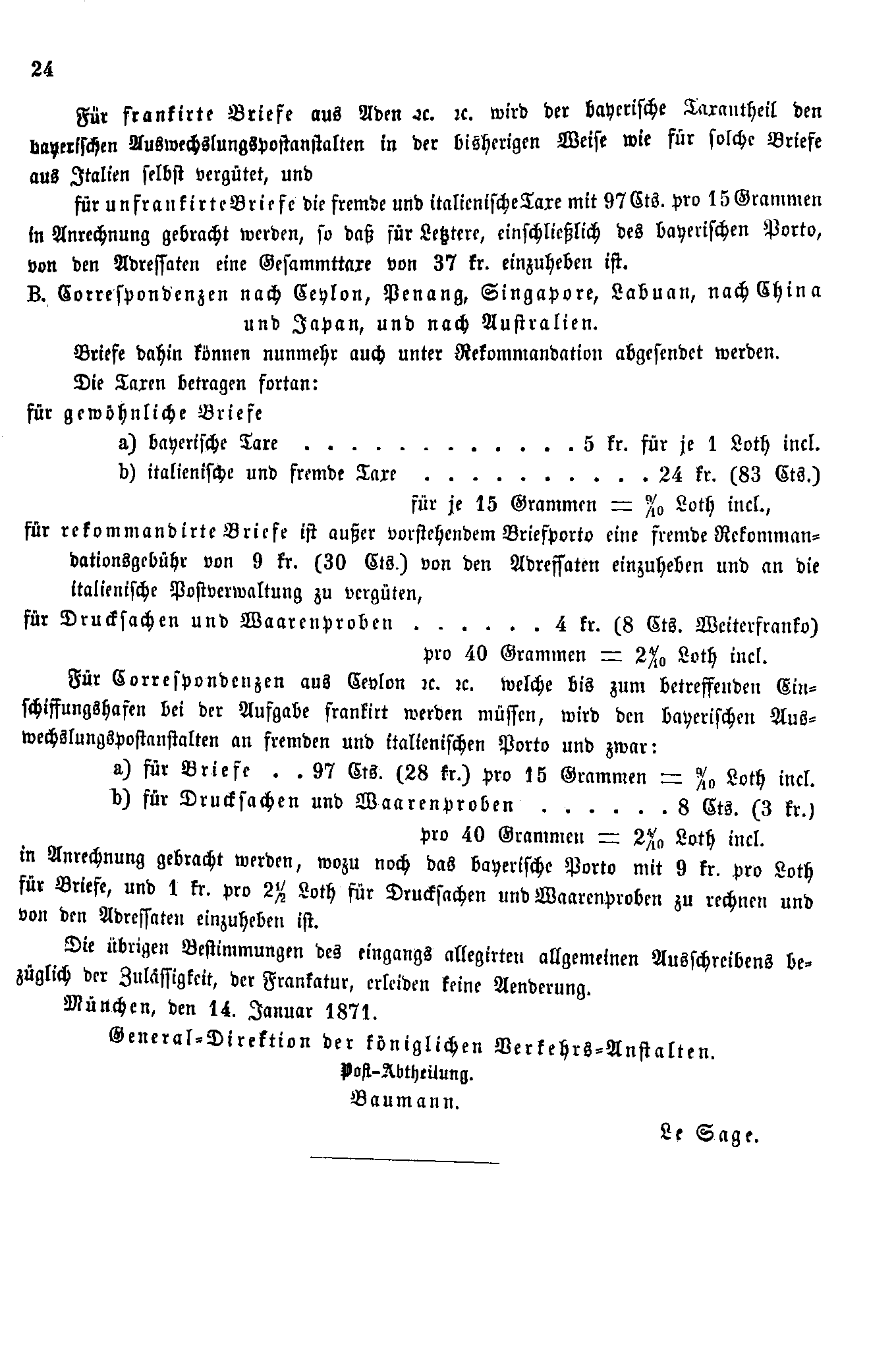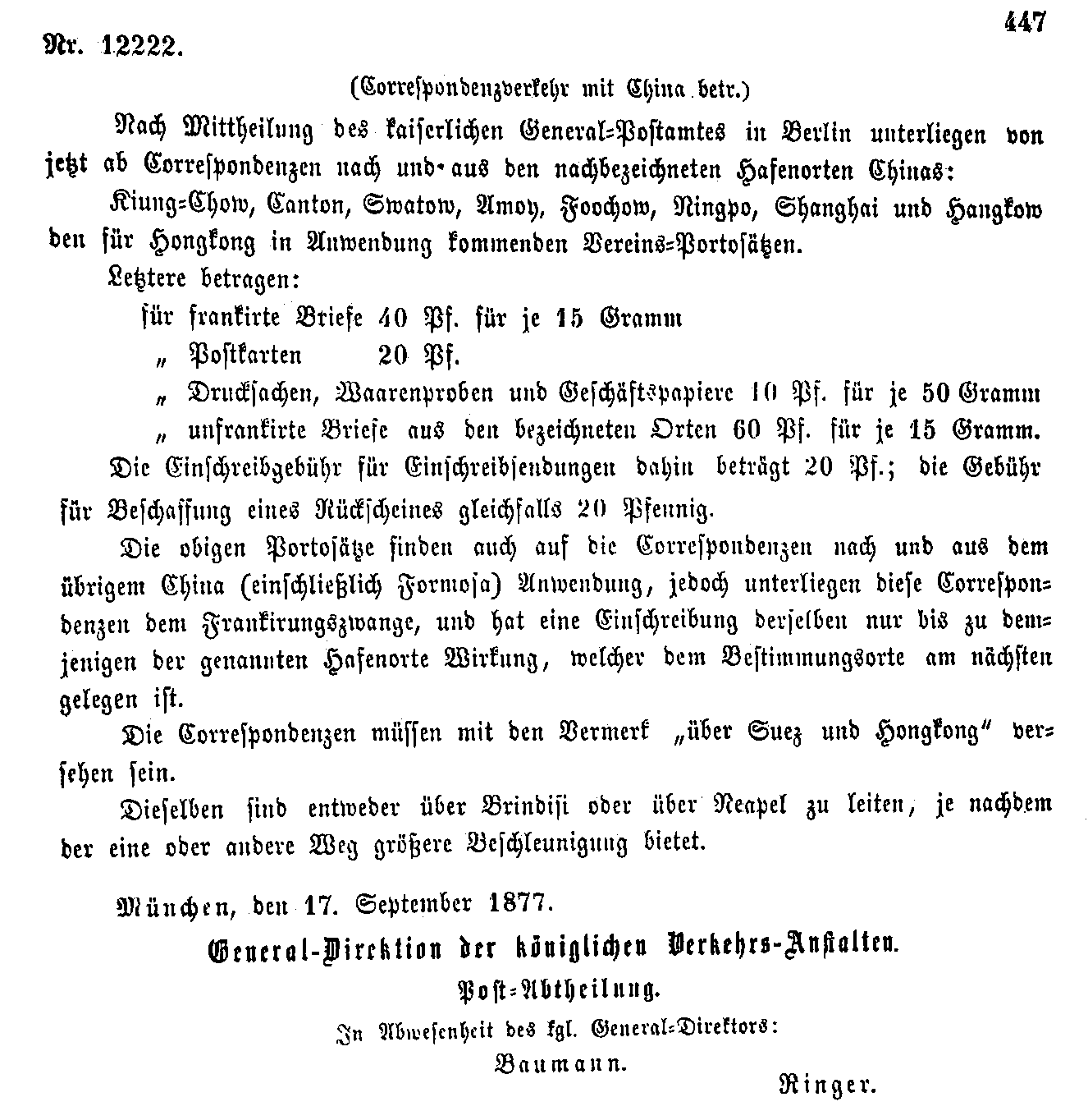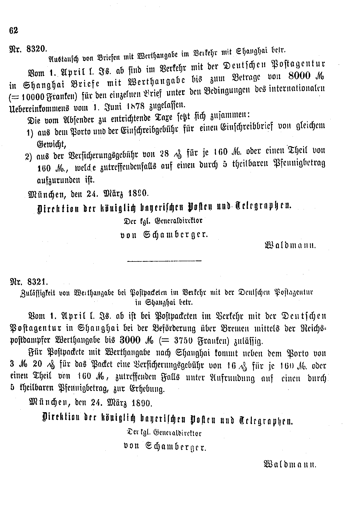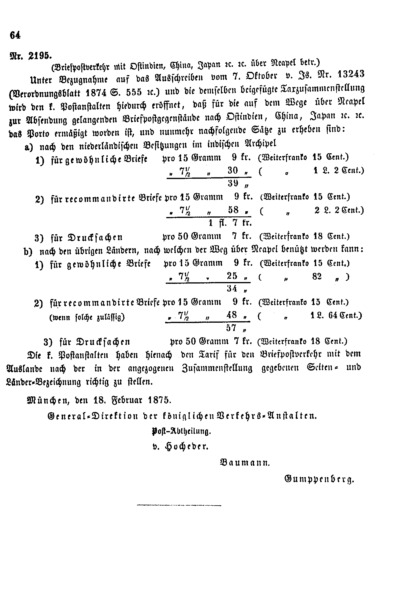 Postverordnungen - Asien