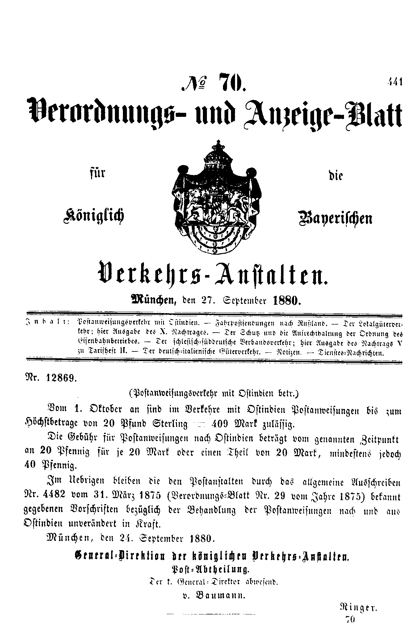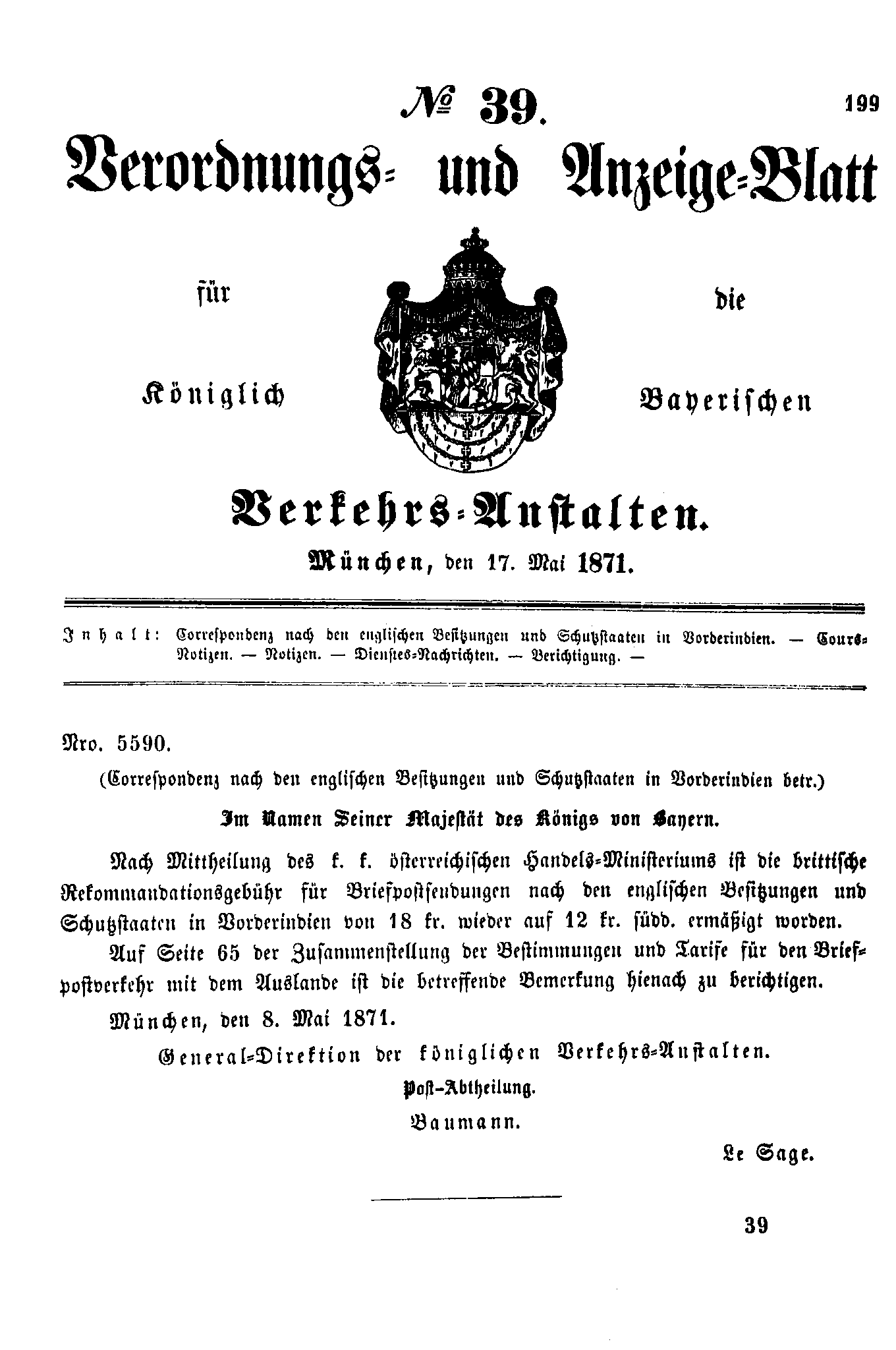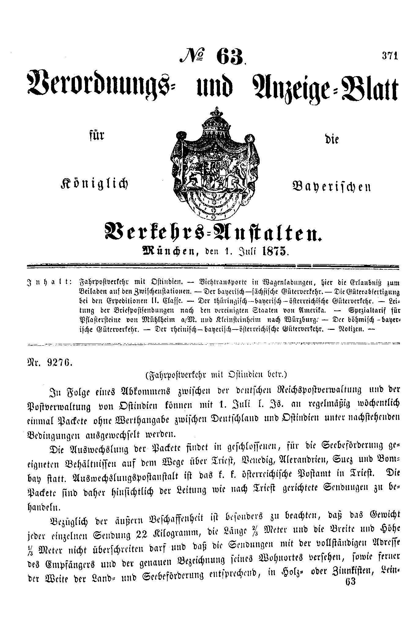 Verordnungs- und Anzeige-Blätter