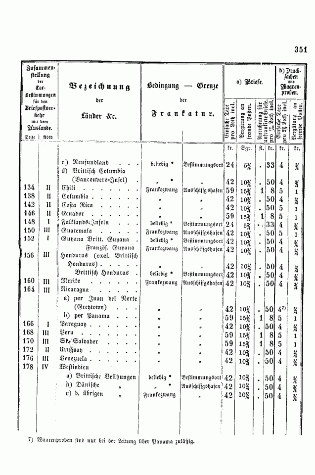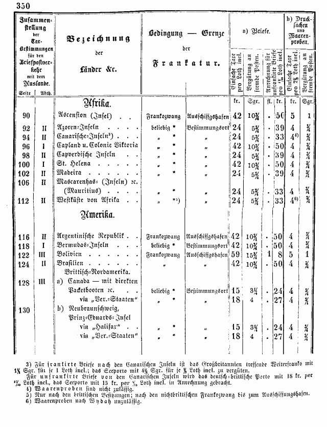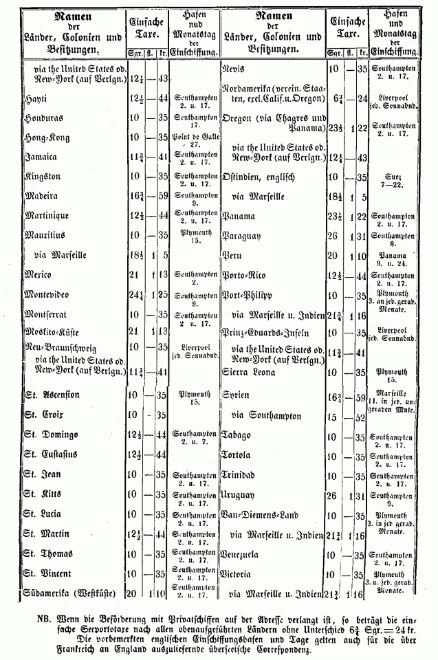 Postverordnungen - Allgemeine Tarife