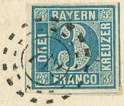 | Der Mühlradstempel 712 mit geschweifter Fahne der Ziffer 7. Die Postexpedition Appersdorf Nd bestand von 01.04.1861 bis 01.04.1865. Die Stempelnummer ging anschließend nach Eschau Uf. Dort wurde als offener Mühlradstempel ein anderer Typ mit schmaler Ziffer 7 und gerader Fahne verwendet. |