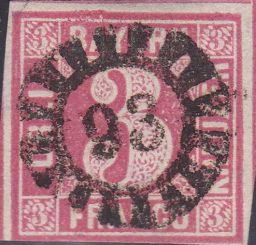 | Beschreibung | Mühlradstempel der ersten Verteilung mit schräg stehenden Ziffern und schmale höher stehende Ziffer 9. | |