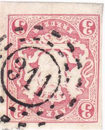 | Beschreibung | Stark verschmutzter und unklarer Stempelabschlag. | |