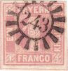 | Beschreibung | Stempel mit etwas grösseren schmalen Ziffern als bei der Type c und zwei gleich hohe Schaufelkränze. | |