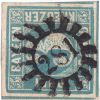 In unserer Stempel-Datenbank finden Sie alle verwendeten Mühlradstempel nach Postorten sortiert. Mit der Suchfunktion können Sie in dieser Sammlung nach bestimmten Mühlradstempeln und Postorten suchen. Verwendete Sondertypen sind in der Detailansicht aufgelistet. Aufruf zur Mitarbeit Im Rahmen unseres Vereinsprojektes möchten wir die Informationsdatenbank weiter ausbauen sowie die Stempel-Abbildungen vervollständigen. Wir freuen uns über jede Beteiligung, um vorhandene Lücken schließen zu können. Wenden Sie sich dazu gerne per E-Mail an: Diese E-Mail-Adresse ist vor Spambots geschützt! Zur Anzeige muss JavaScript eingeschaltet sein. Ein Scanwert von 300dpi reicht bei Ihrer Einlieferung vollkommen aus, die Größenanpassung werden wir vor Veröffentlichung vornehmen (ca. 512x512px). Idealerweise benennen Sie die Bilddateien mit Angabe des Stempeltyps und ggfs. der Verteilung sowie der Stempelnummer (z.B. gmr1_313.jpg). Der Dateityp sollte nach Möglichkeit JPEG oder PNG sein. Vorsicht ist bei Unterscheidung zwischen erster und zweiter Verteilung der Mühlradstempel geboten: Da wir die Abbildungen gerne eindeutig zuordnen möchten, sollten diese nachvollziehbar oder belegbar sein. Gerne können Sie auch Scans von Belegen, bei denen z.B. zusätzlich der Ortsstempel erkennbar ist, einliefern. Hinweise und Tipps zur Suche Die Preisbewertungen haben wir aus dem Spezialkatalog Kreuzerausgaben (8. Auflage) von Peter Sem übernommen. Die Preise verstehen sich in Euro. Peter Sem hat in seinem Handbuch weitere Details für die Berwertungen beschrieben, diese können dort nachgeschlagen werden. Der ARGE-Preisindex ergibt sich aus dieser Bewertung und ist in drei Stufen unterteilt: ab 5€ (€), ab 50€ (€€) und ab 500€ (€€€).Suchtipp: sollten Sie bei Ihrer Suche widererwarten kein Ergebnis erhalten, setzen Sie den Suchfilter mit "Zurücksetzen" in den ursprünglichen Zustand zurück.
