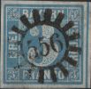 In unserer Stempel-Datenbank finden Sie alle verwendeten Mühlradstempel nach Postorten sortiert. Mit der Suchfunktion können Sie in dieser Sammlung nach bestimmten Mühlradstempeln und Postorten suchen. Verwendete Sondertypen sind in der Detailansicht aufgelistet. Aufruf zur Mitarbeit Im Rahmen unseres Vereinsprojektes möchten wir die Informationsdatenbank weiter ausbauen sowie die Stempel-Abbildungen vervollständigen. Wir freuen uns über jede Beteiligung, um vorhandene Lücken schließen zu können. Wenden Sie sich dazu gerne per E-Mail an: Diese E-Mail-Adresse ist vor Spambots geschützt! Zur Anzeige muss JavaScript eingeschaltet sein. Ein Scanwert von 300dpi reicht bei Ihrer Einlieferung vollkommen aus, die Größenanpassung werden wir vor Veröffentlichung vornehmen (ca. 512x512px). Idealerweise benennen Sie die Bilddateien mit Angabe des Stempeltyps und ggfs. der Verteilung sowie der Stempelnummer (z.B. gmr1_313.jpg). Der Dateityp sollte nach Möglichkeit JPEG oder PNG sein. Vorsicht ist bei Unterscheidung zwischen erster und zweiter Verteilung der Mühlradstempel geboten: Da wir die Abbildungen gerne eindeutig zuordnen möchten, sollten diese nachvollziehbar oder belegbar sein. Gerne können Sie auch Scans von Belegen, bei denen z.B. zusätzlich der Ortsstempel erkennbar ist, einliefern. Hinweise und Tipps zur Suche Die Preisbewertungen haben wir aus dem Spezialkatalog Kreuzerausgaben (8. Auflage) von Peter Sem übernommen. Die Preise verstehen sich in Euro. Peter Sem hat in seinem Handbuch weitere Details für die Berwertungen beschrieben, diese können dort nachgeschlagen werden. Der ARGE-Preisindex ergibt sich aus dieser Bewertung und ist in drei Stufen unterteilt: ab 5€ (€), ab 50€ (€€) und ab 500€ (€€€).Suchtipp: sollten Sie bei Ihrer Suche widererwarten kein Ergebnis erhalten, setzen Sie den Suchfilter mit "Zurücksetzen" in den ursprünglichen Zustand zurück.