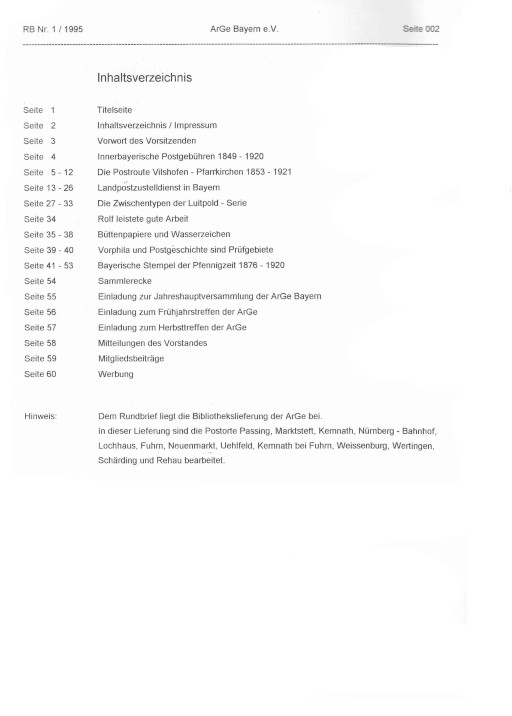 - Rundbrief der ARGE Bayern aus dem Jahre 1995. Gedruckt im Format DIN A4 mit vielen s/w-Abbildungen.