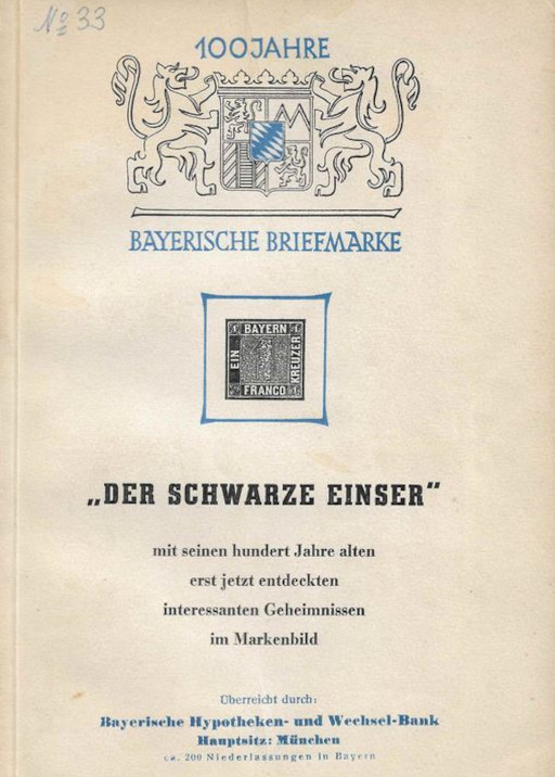 - Zum Jubiläum 100 Jahre bayerische Briefmarke wurde das Heft mit vielen neu entdeckten interessanten Geheimnissen veröffentlicht. Anhand zahlreicher Abbildungen wird intensiv auf das Markenbild eingegangen.