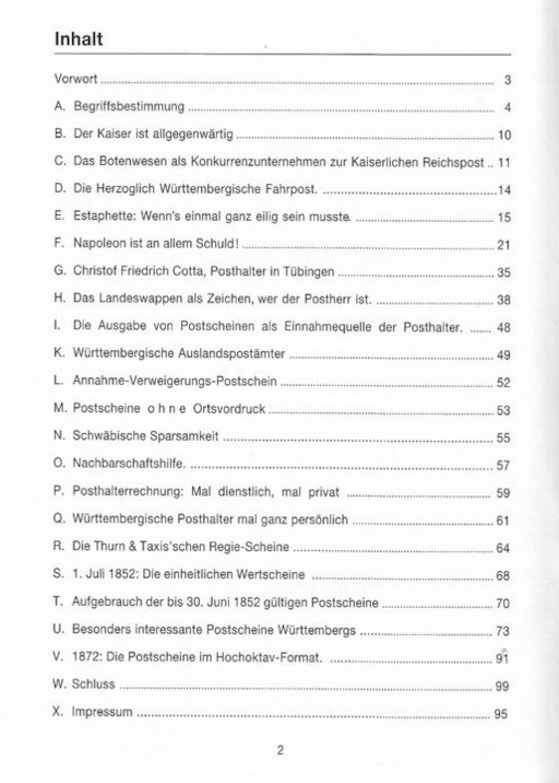 - Behandlung der verschiedenen Postscheine von Württemberg. Anhand vieler s/w-Abbildungen sehr umfassend veranschaulicht.