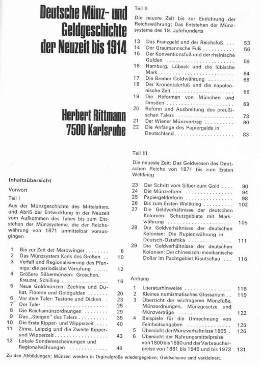 - Die Deutsche Münz- und Geldgeschichte von Anbeginn bis zum ersten Weltkrieg 1914 sehr anschaulich erläutert. Mit vielen s/w-Abbildungen.