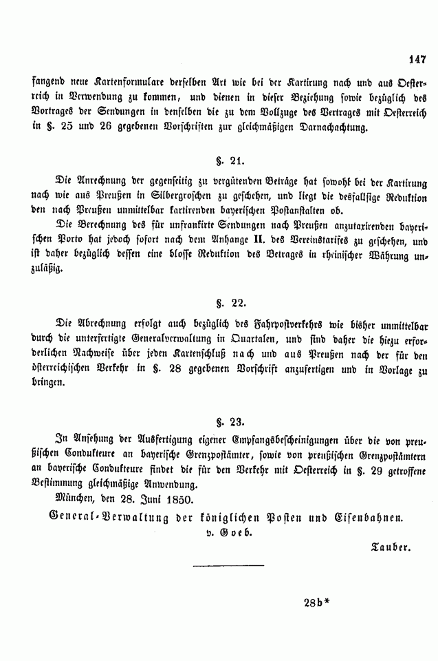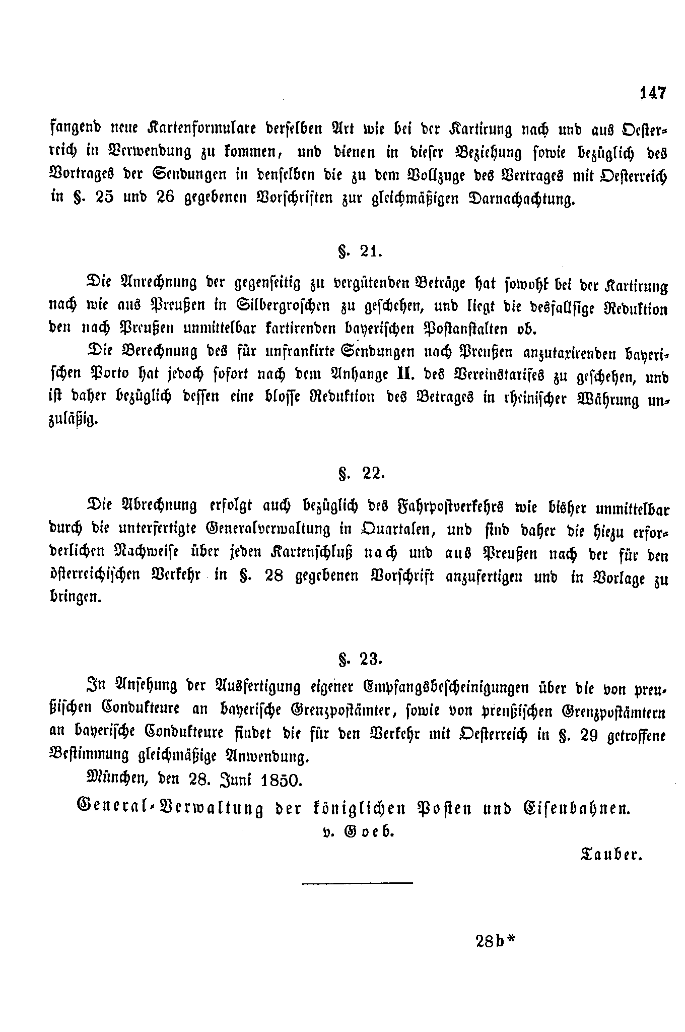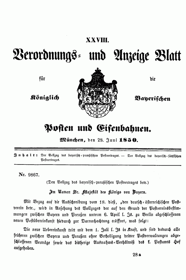 Postverordnungen - Postvertrag Bayern-Preussen-Sachsen 1850
