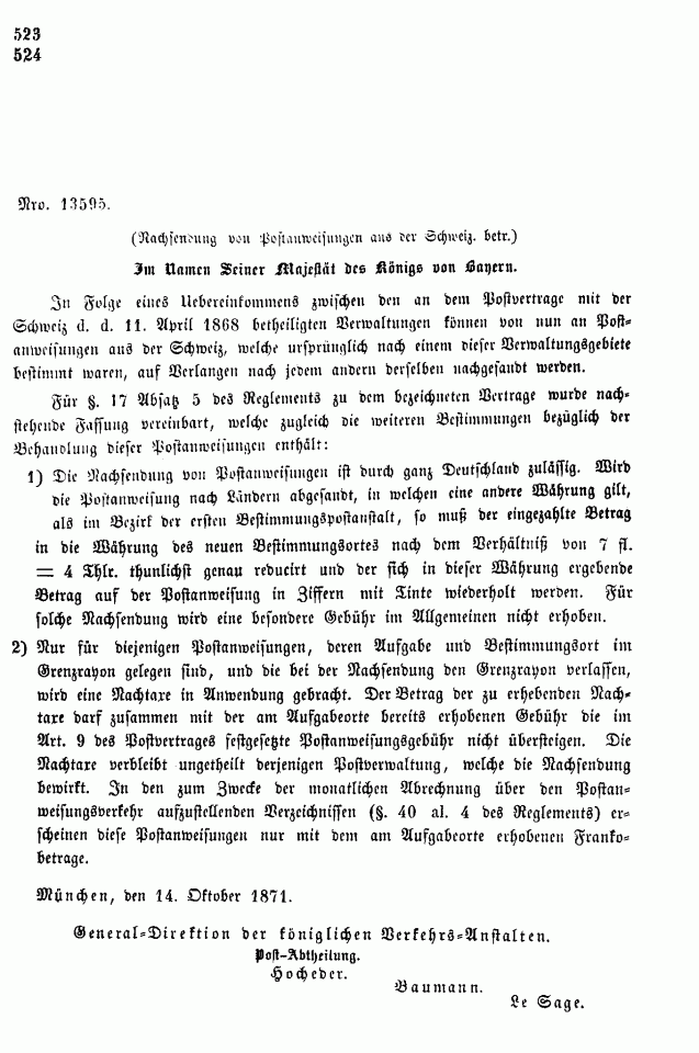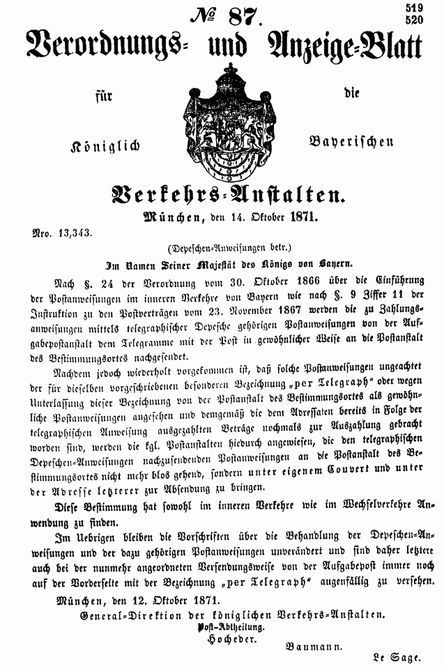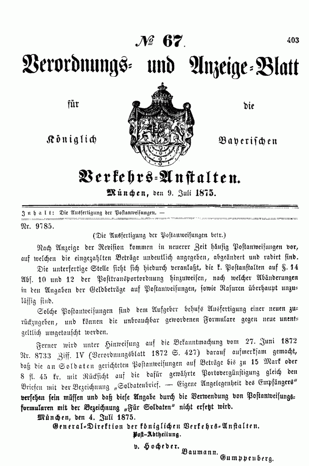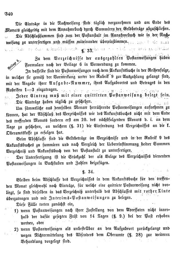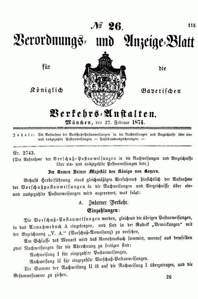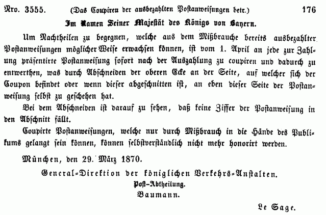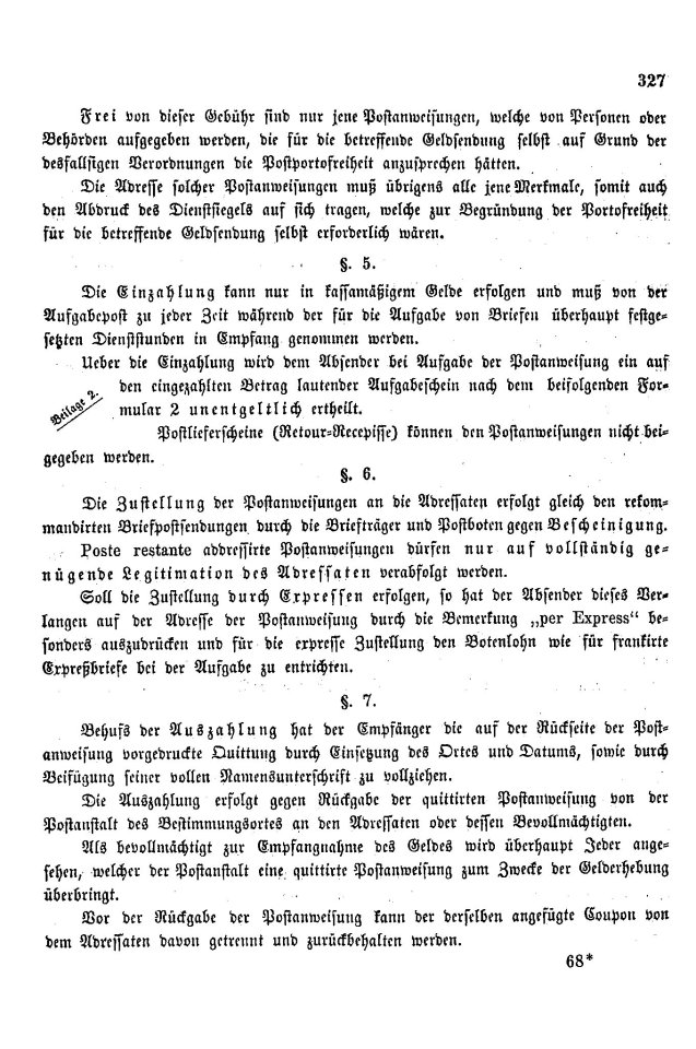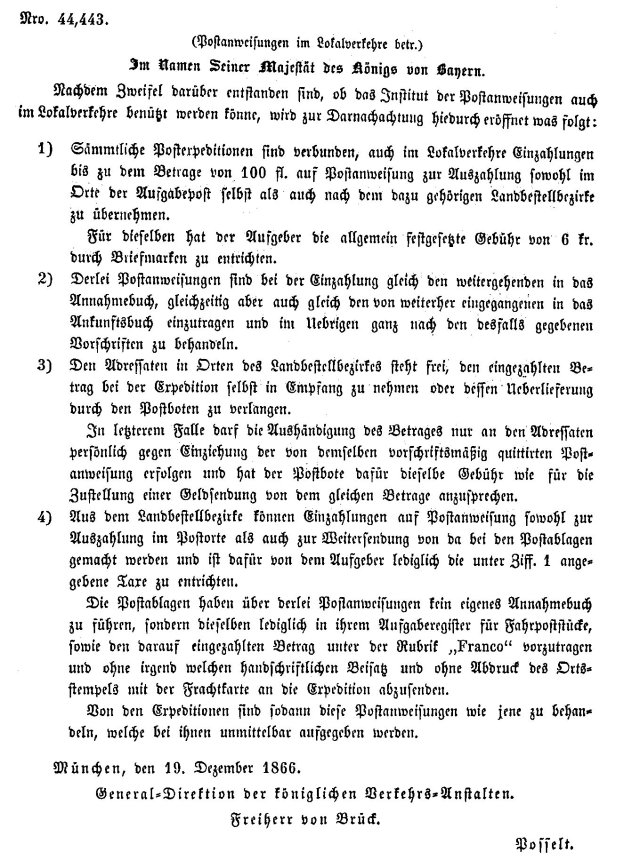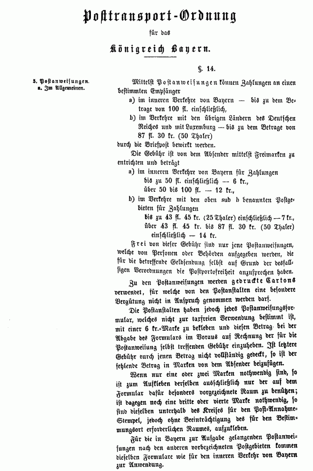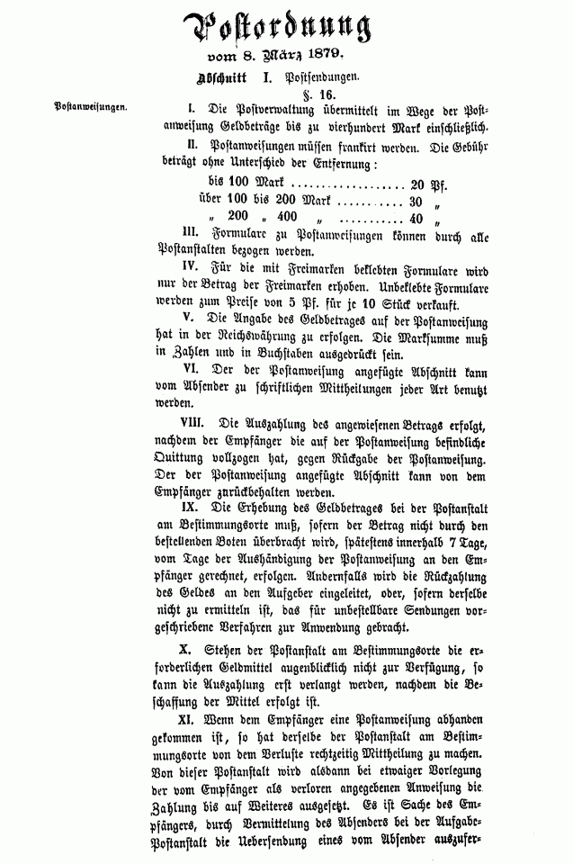 Postverordnungen - Postanweisungen