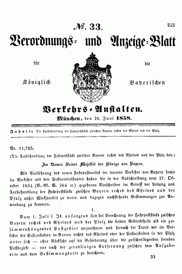 Verordnungs- und Anzeige-Blätter
