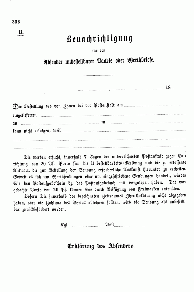 Postverordnungen - Fahrpostsendungen