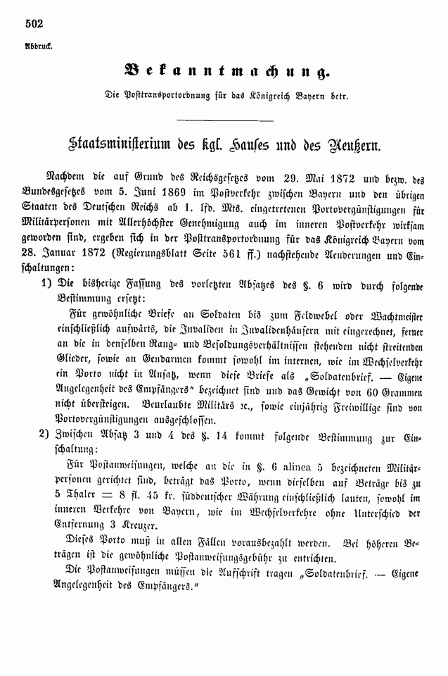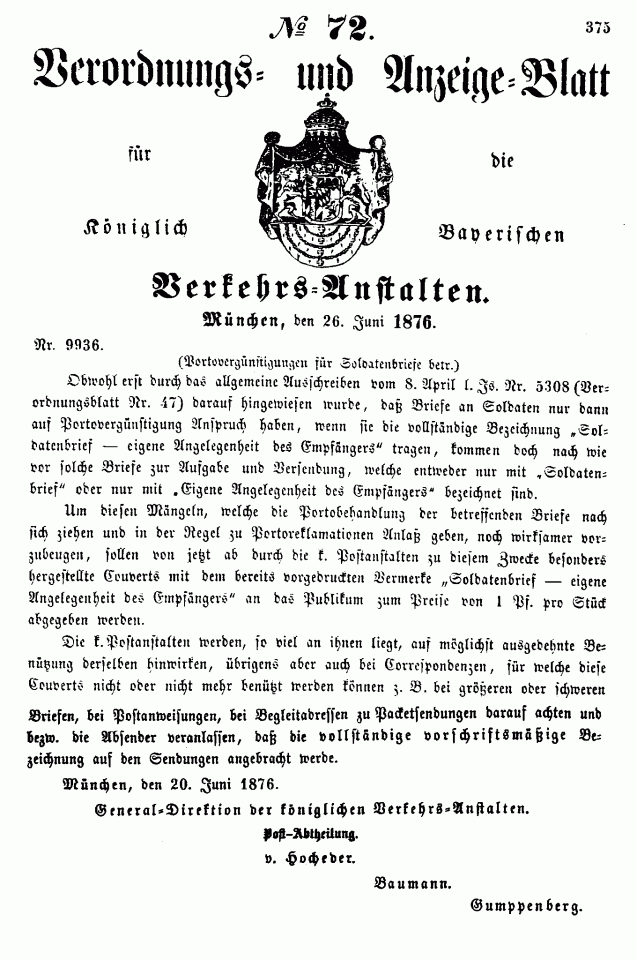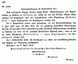 Postverordnungen - Feldpost- und Sodatensendungen