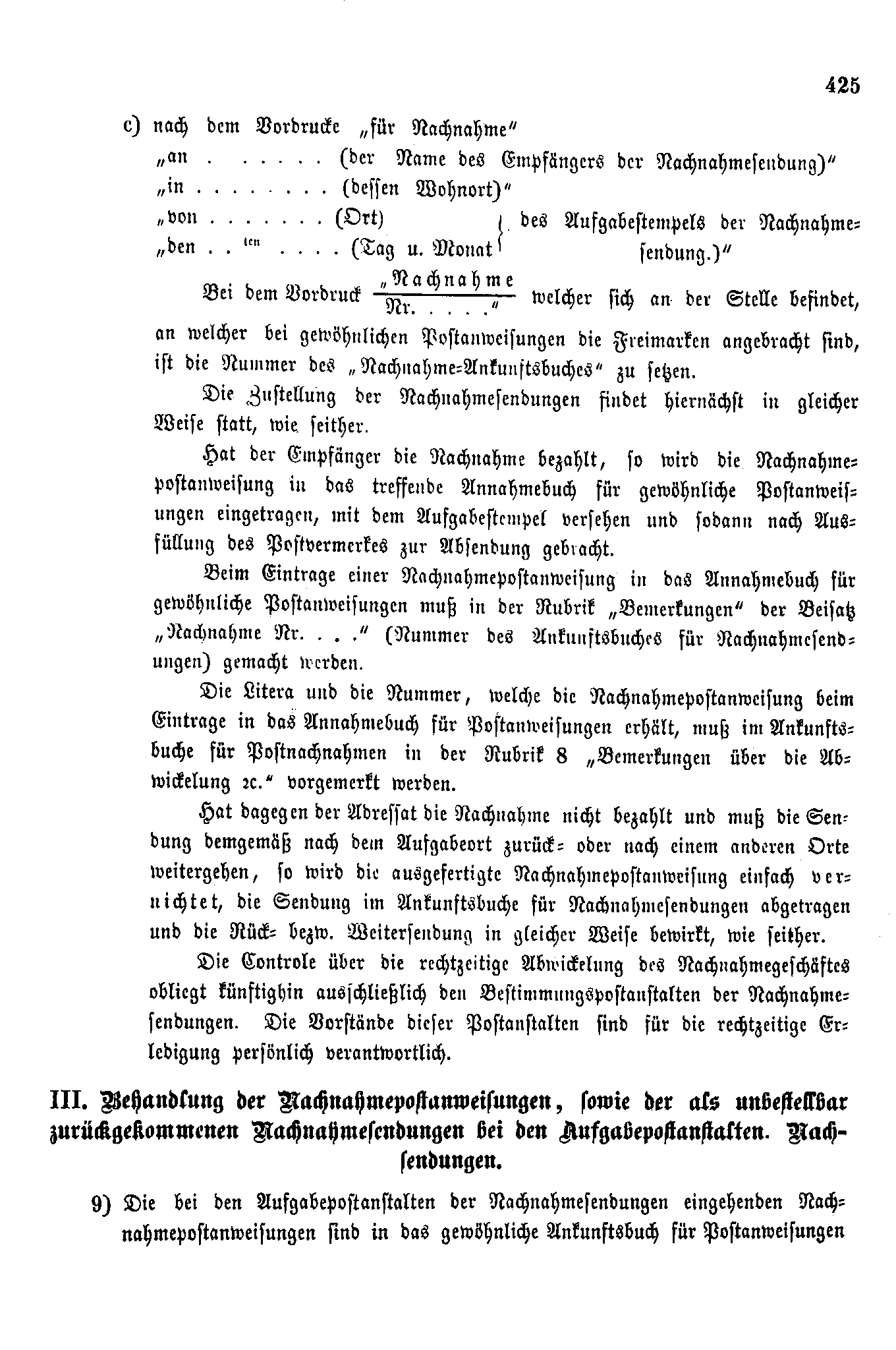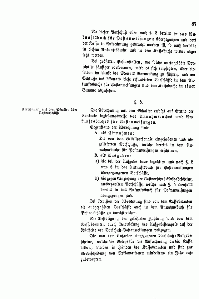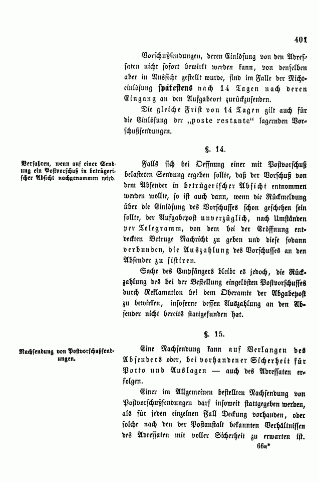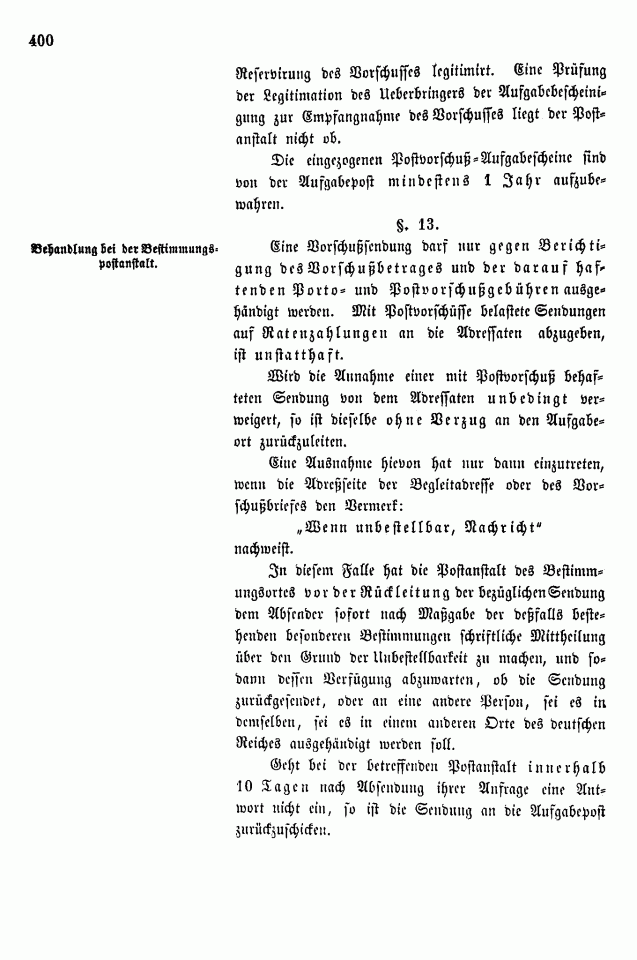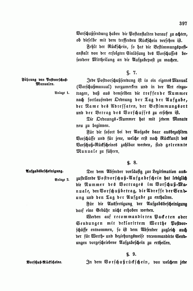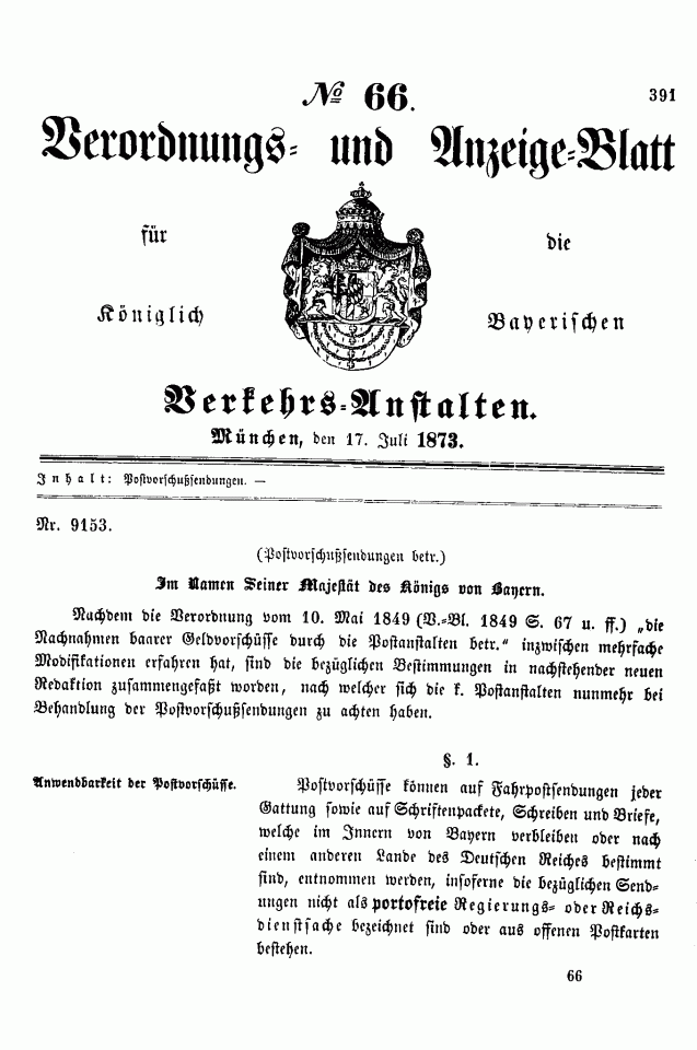 Postverordnungen - Vorschuss und Nachnahme