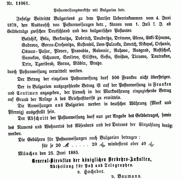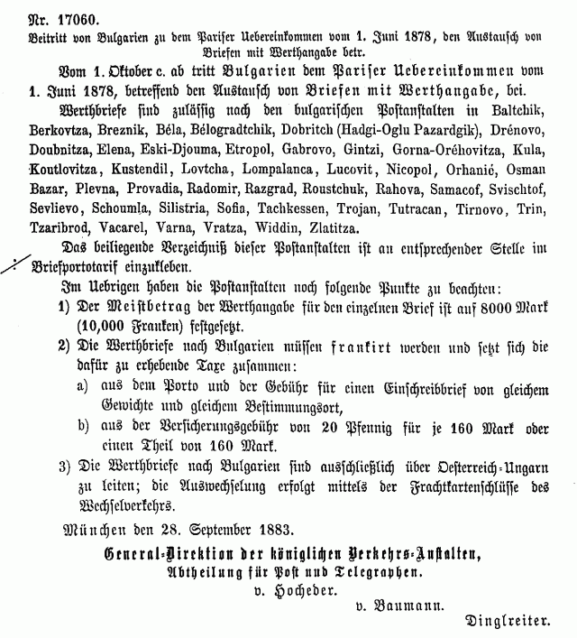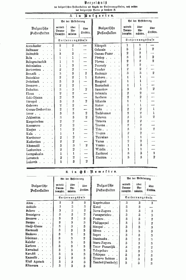 Postverordnungen - Bulgarien, Albanien