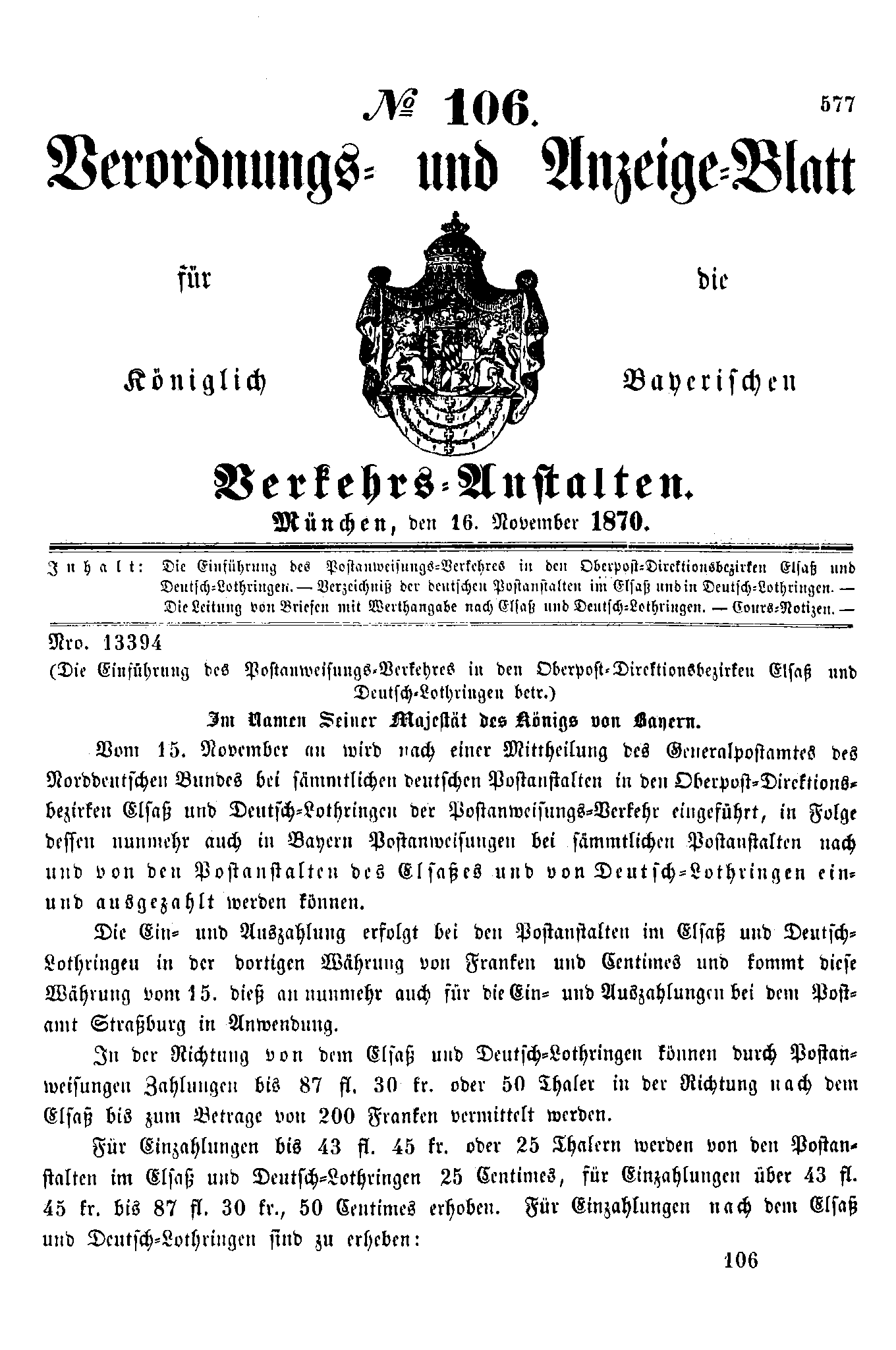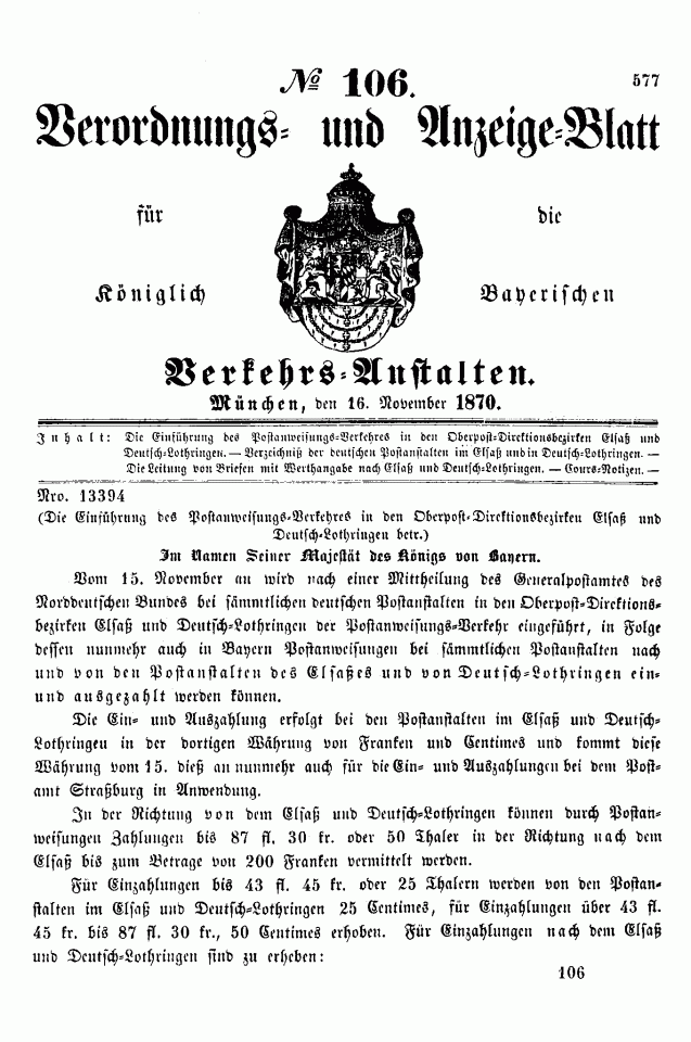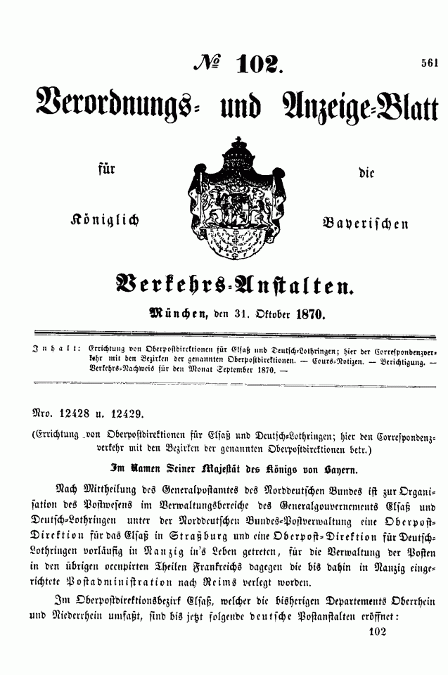 Verordnungs- und Anzeige-Blätter