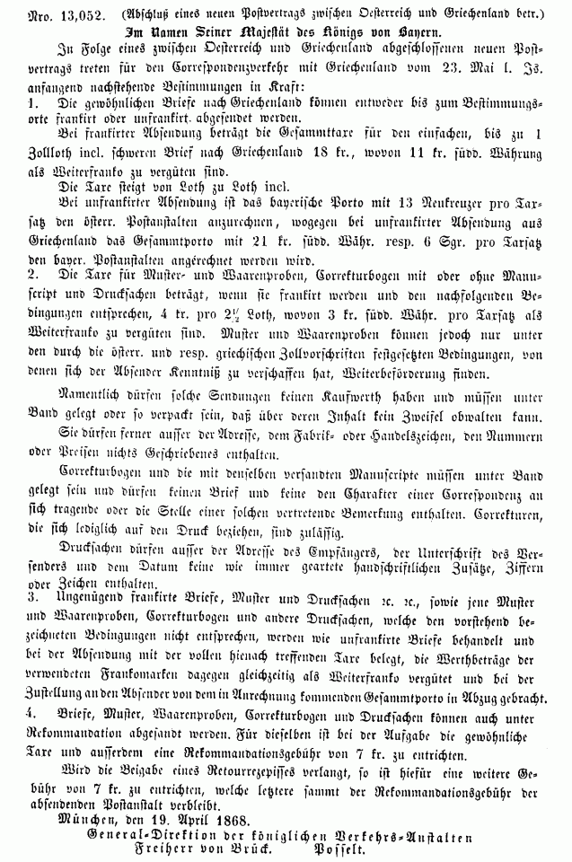 Postverordnungen - Griechenland mit Inseln und Zypern