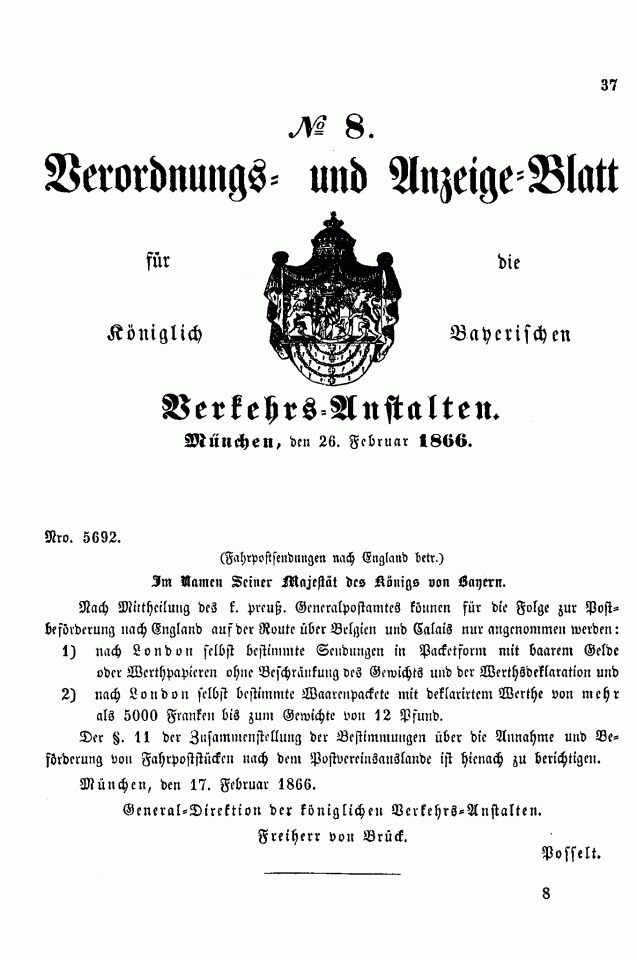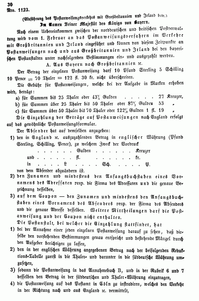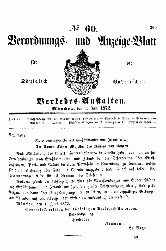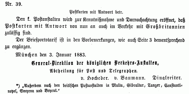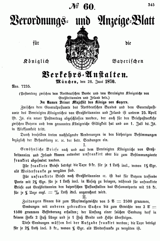 Postverordnungen - Grossbritannien, Irland und Helgoland